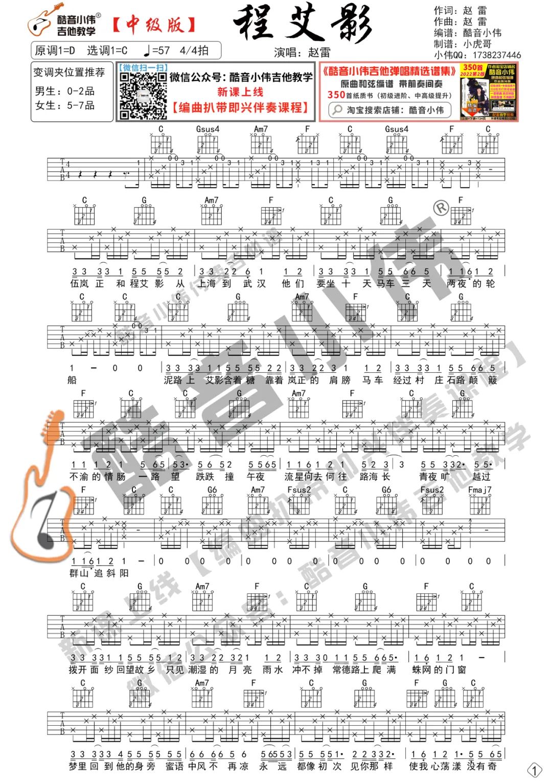 程艾影吉他谱 - 赵雷 - C调吉他弹唱谱