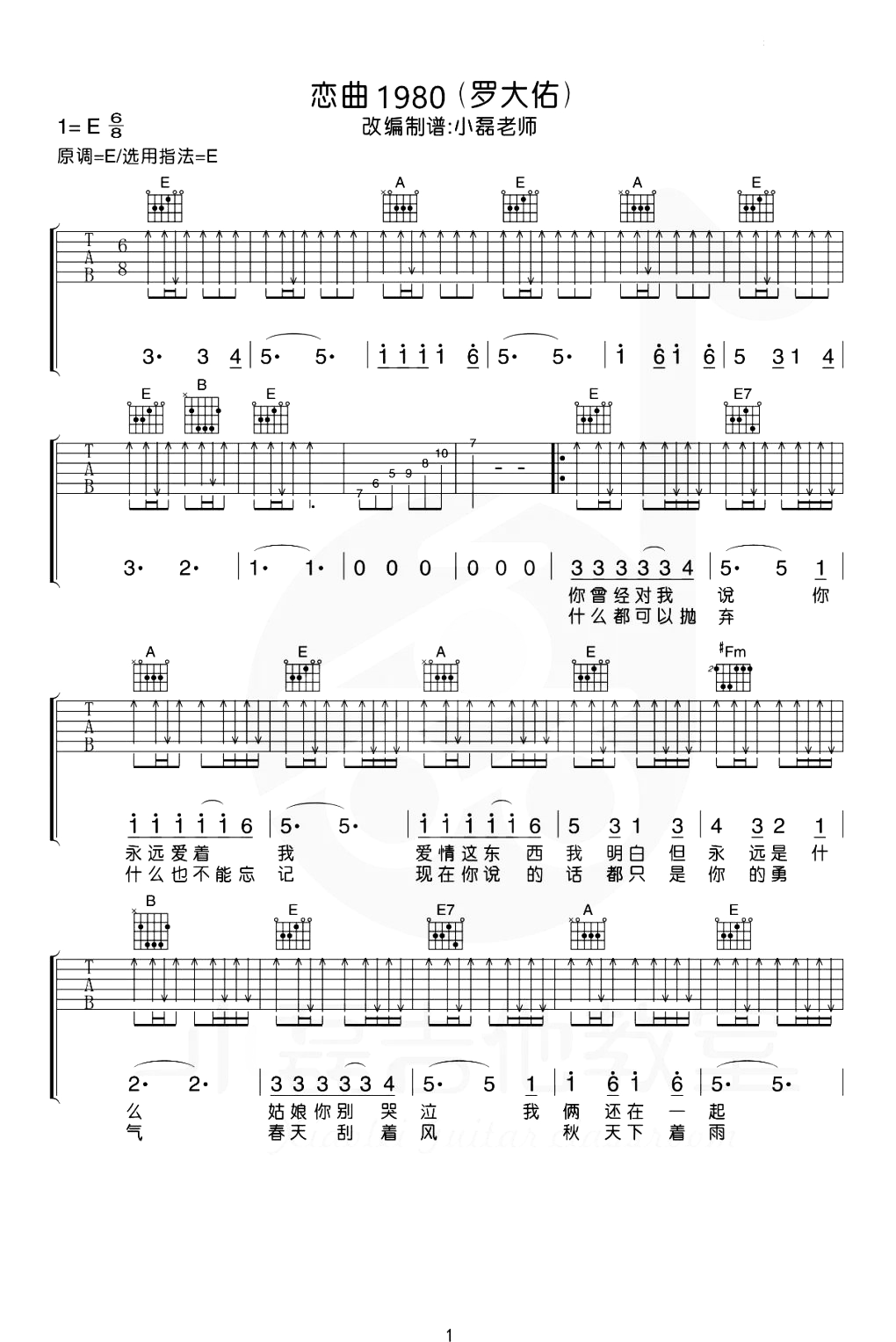 恋曲1980吉他谱 - 罗大佑 - E调吉他弹唱谱 - 原版