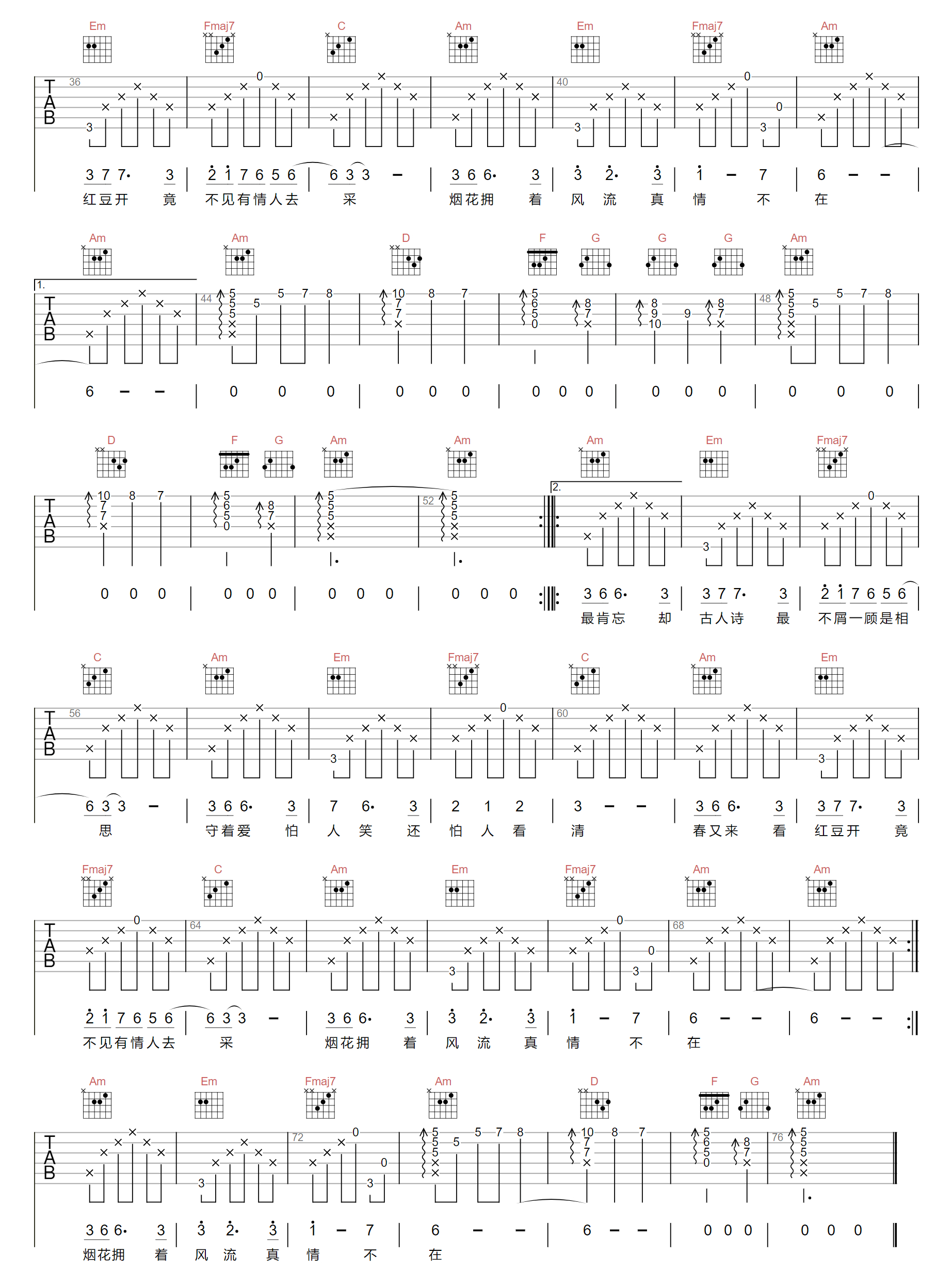 相思吉他谱 - 毛阿敏 - C调吉他弹唱谱 - 原版