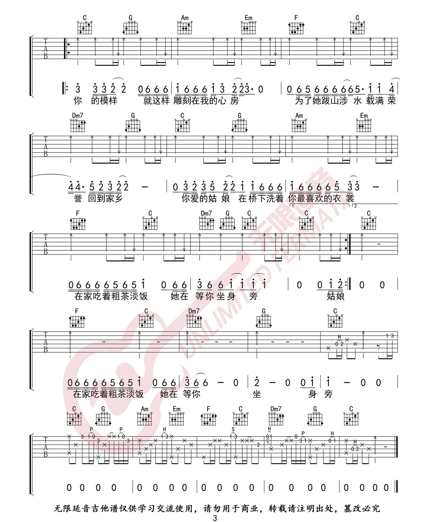 你的姑娘吉他谱 - 隔壁老樊 - C调吉他弹唱谱 - 原版