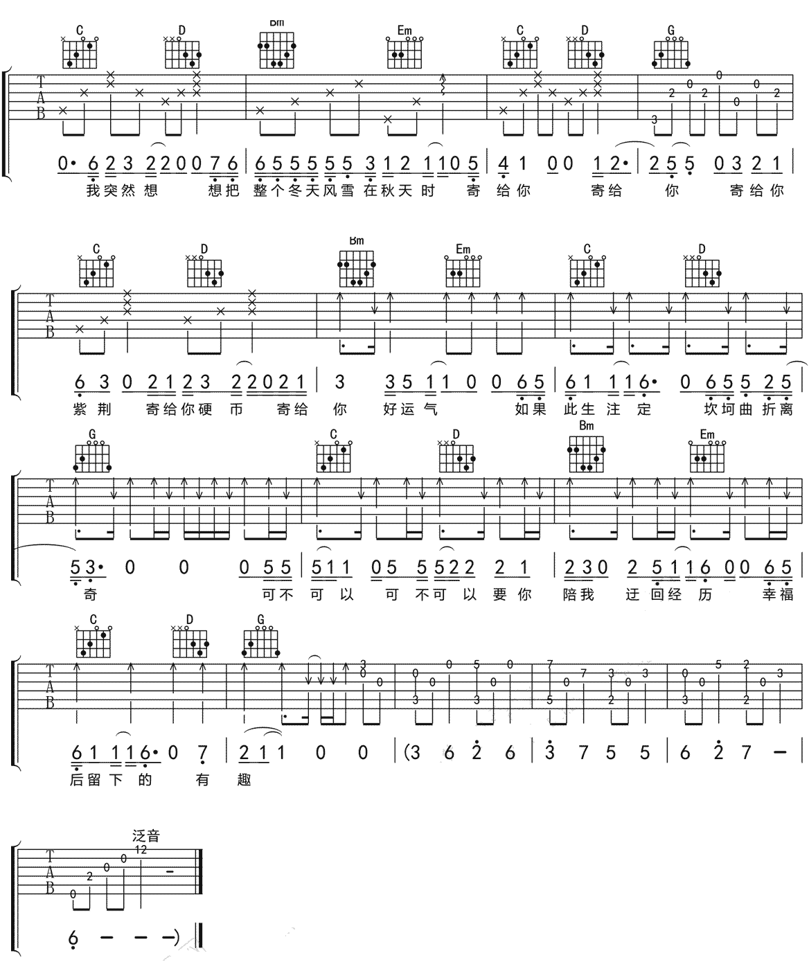 寄吉他谱 - HHW - G调吉他弹唱谱 - 原版