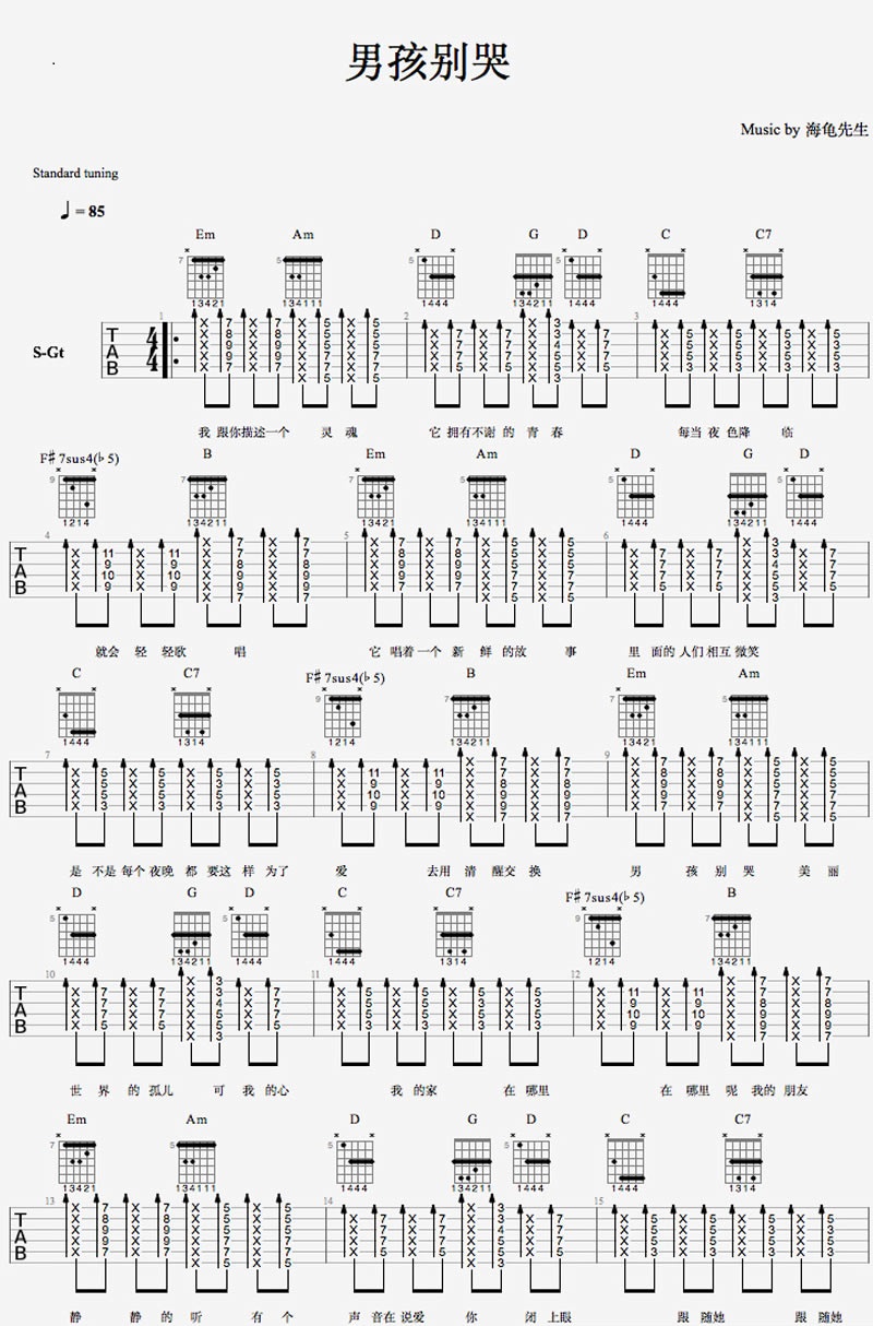 男孩别哭吉他谱 - 海龟先生 - G调吉他弹唱谱 - 原版