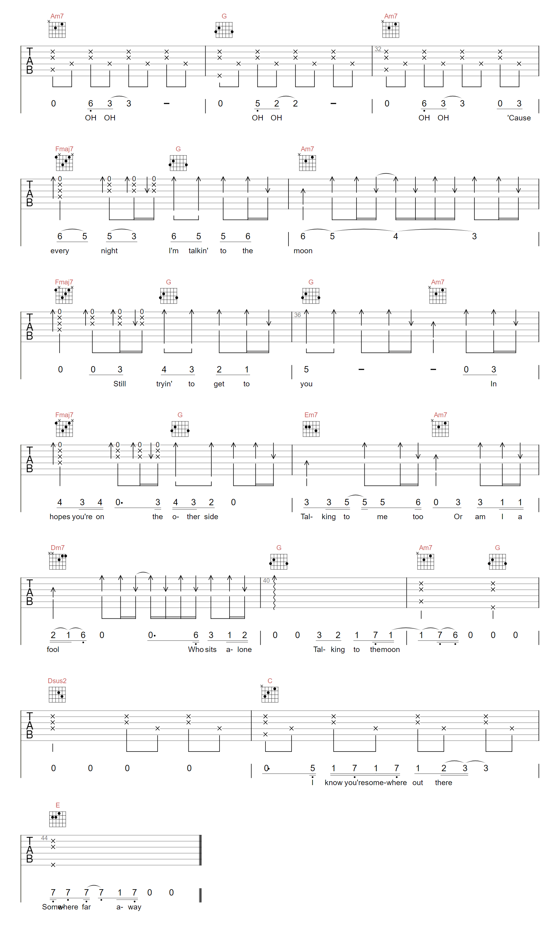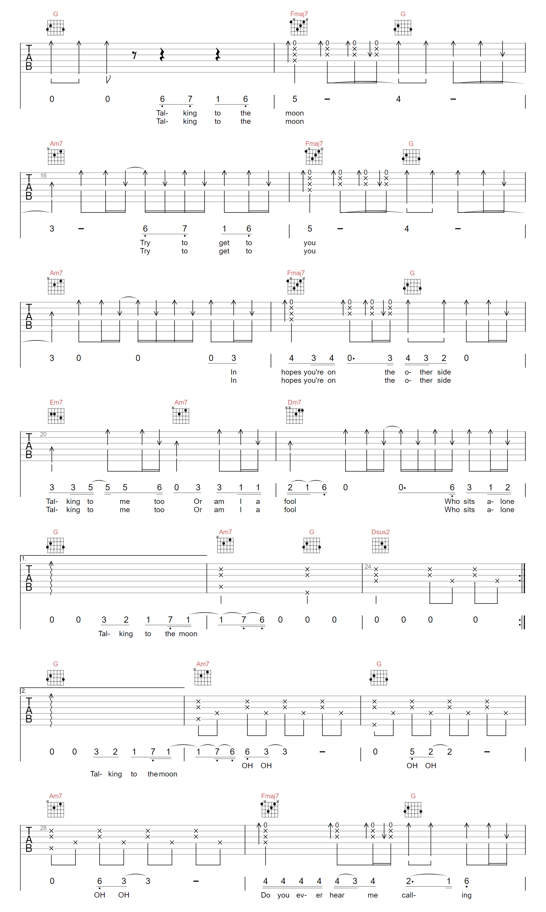 Talking To The Moon吉他谱 - Talking - C调吉他弹唱谱
