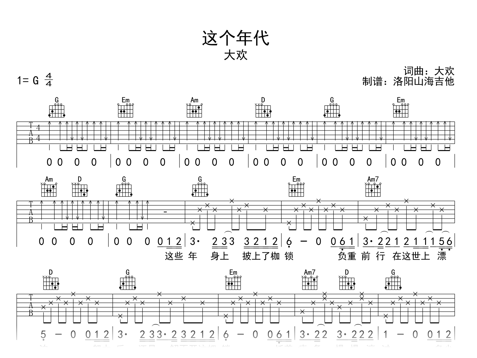 这个年代吉他谱 - 大欢 - G调吉他弹唱谱