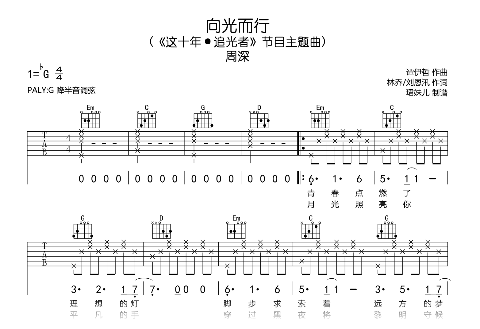 向光而行吉他谱 - 周深 - G调吉他弹唱谱