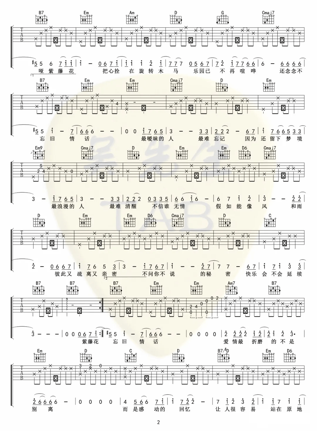 当前位置:琴谱网>吉他弹唱>紫藤花
