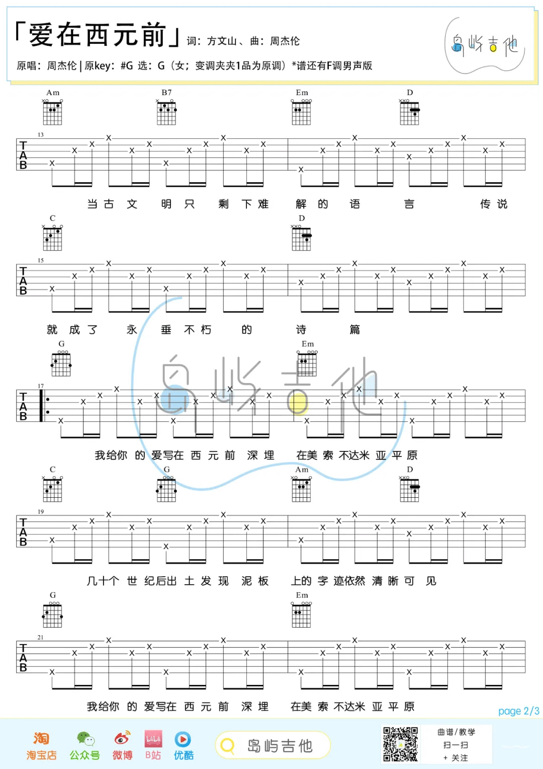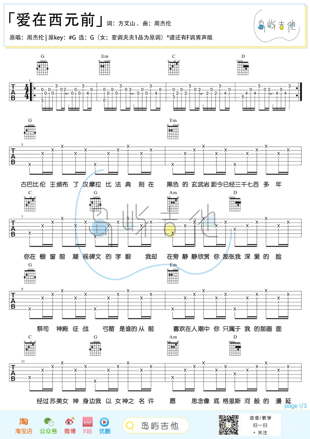 爱在西元前吉他谱 - 周杰伦 - G调吉他弹唱谱