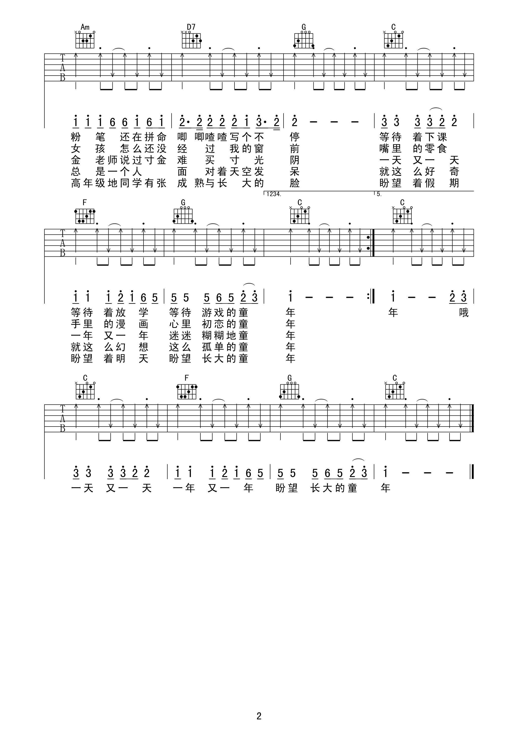 当前位置:琴谱网>吉他弹唱>童年