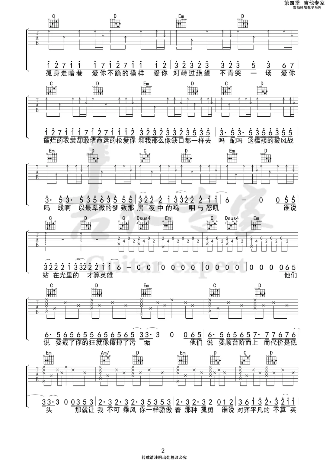 当前位置:琴谱网>吉他弹唱>孤勇者