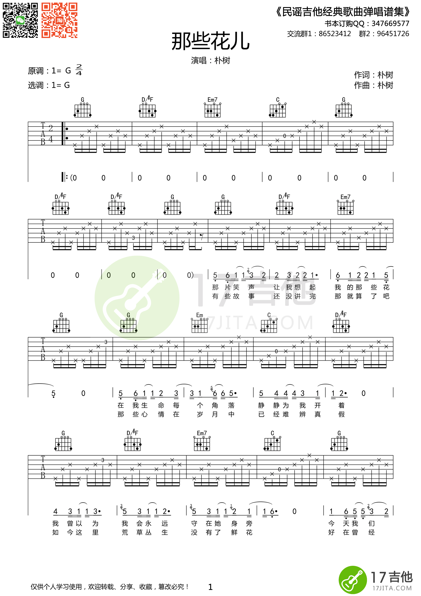 那些花儿吉他谱 - 朴树 - G调吉他弹唱谱 - 原版