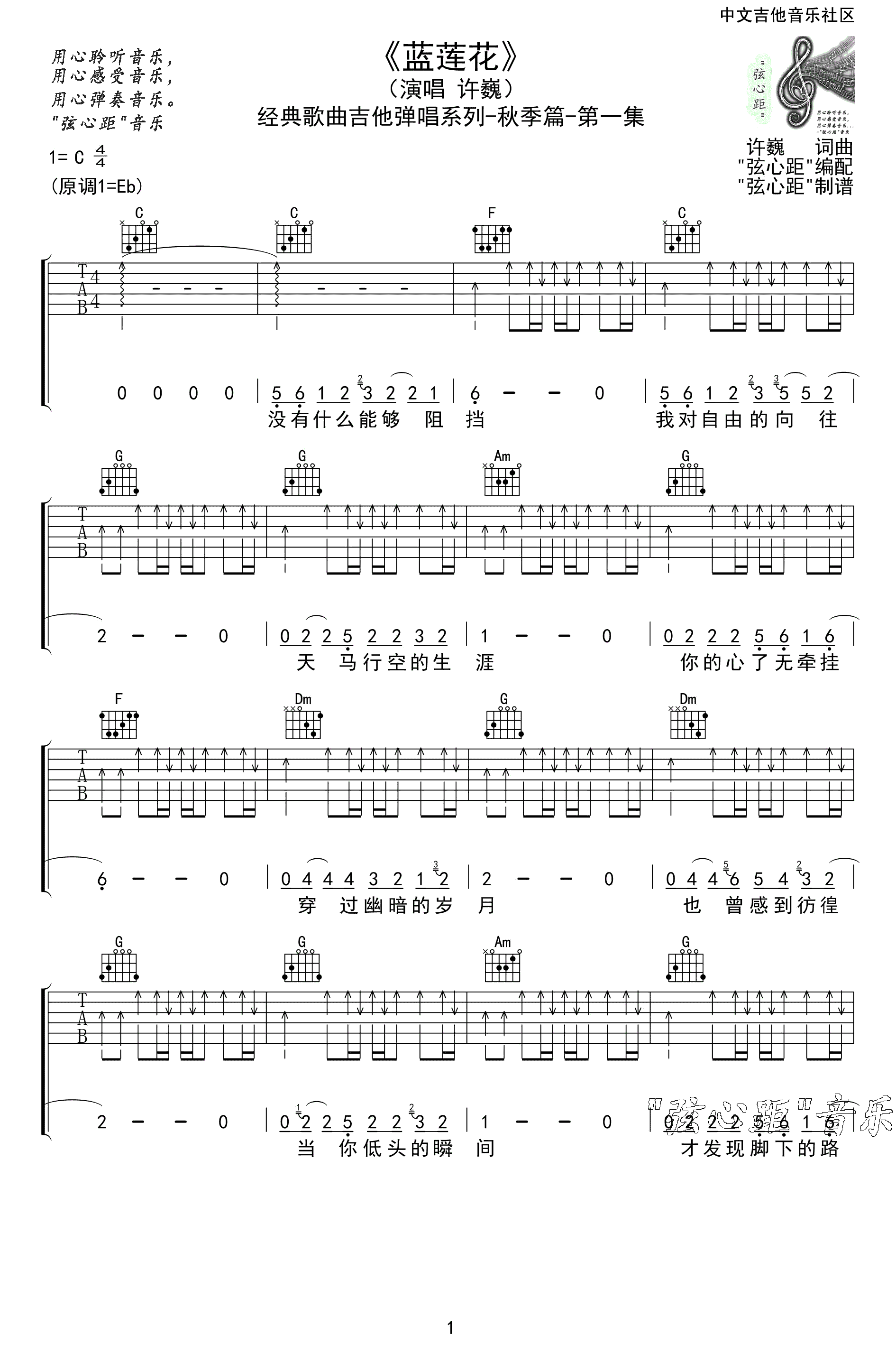 蓝莲花吉他谱 - 许巍 - C调吉他弹唱谱