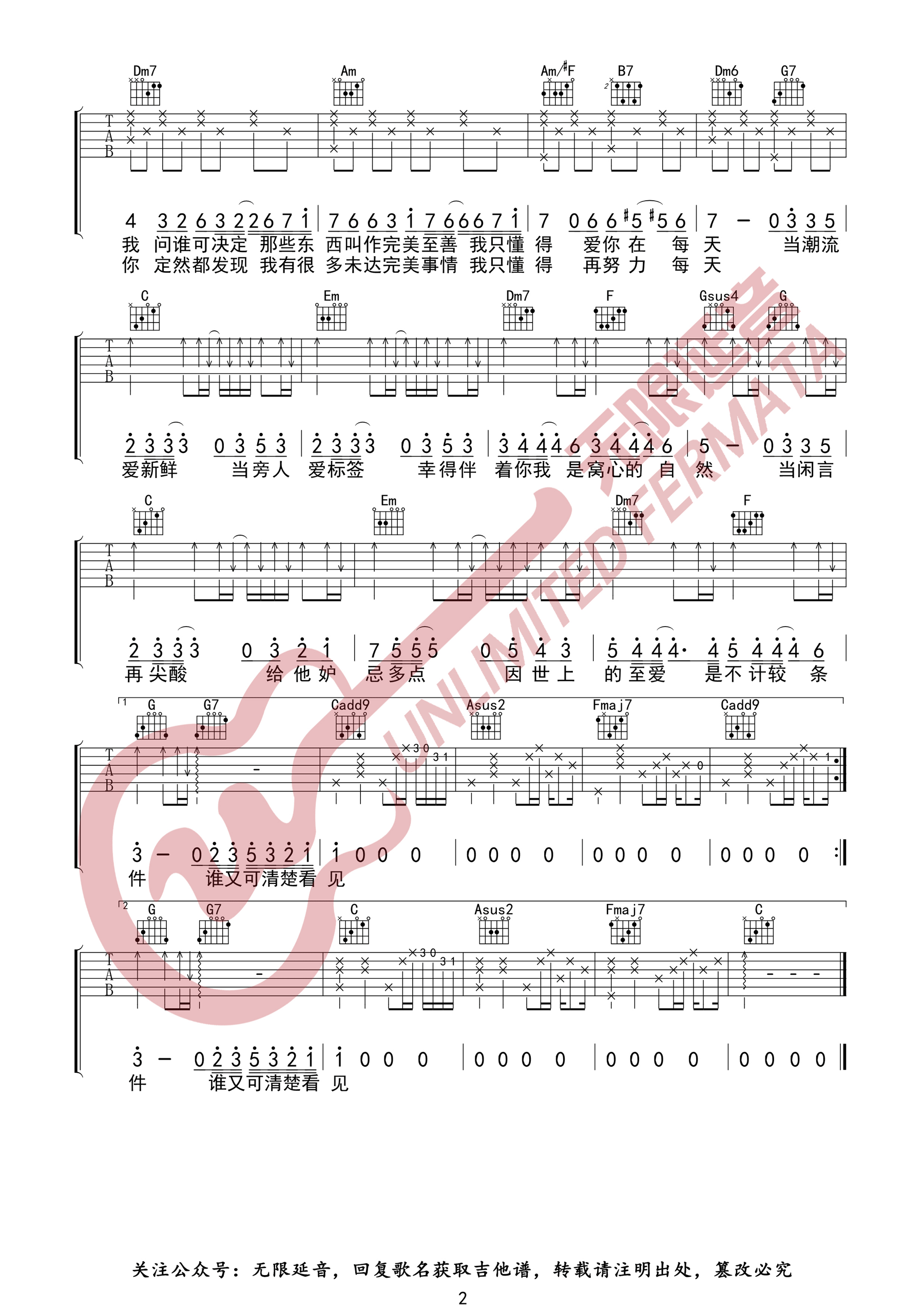 当前位置:琴谱网>吉他弹唱>无条件