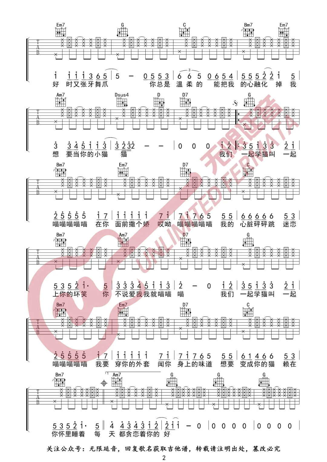 当前位置:琴谱网>吉他弹唱>学猫叫