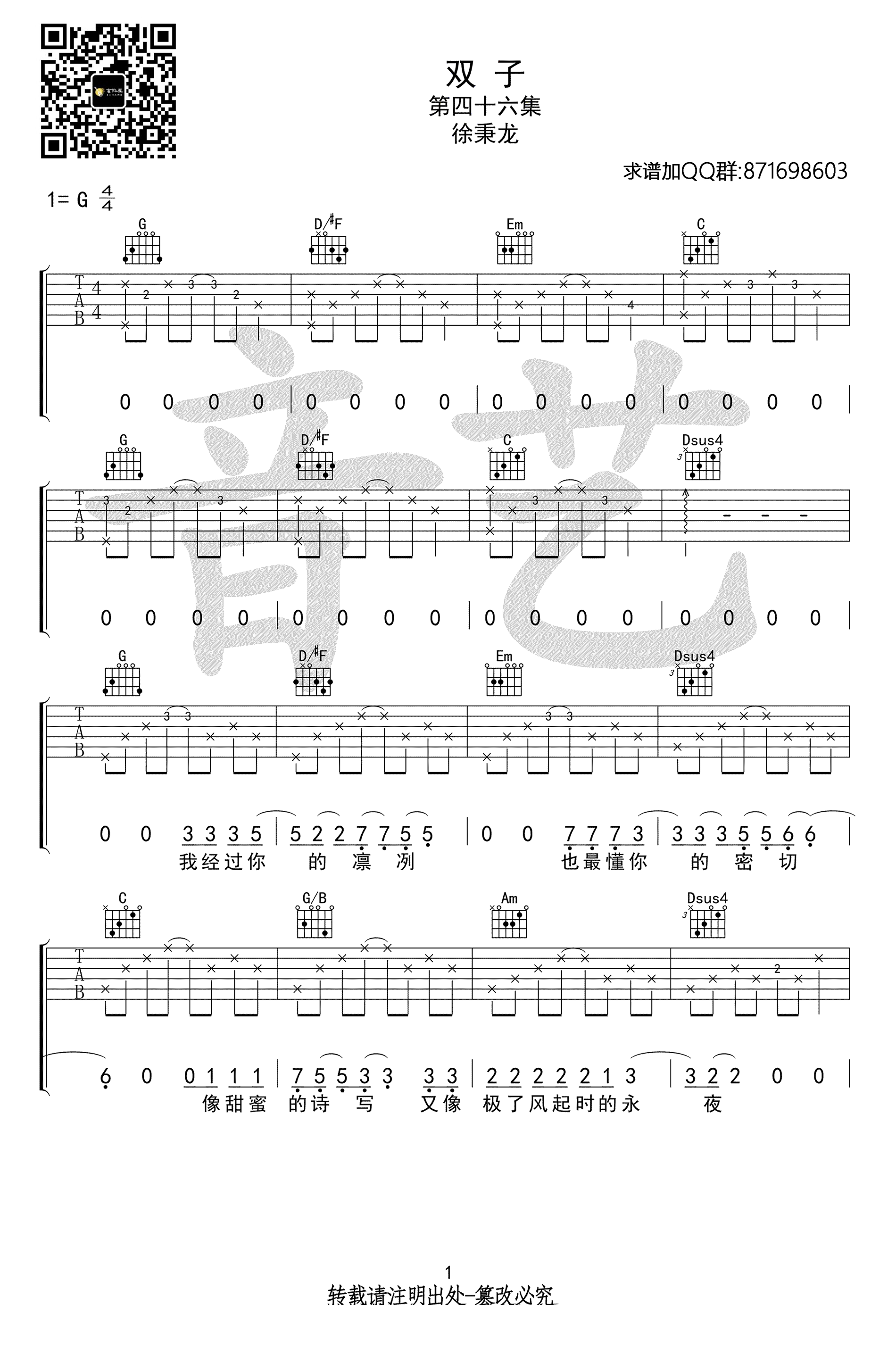 双子吉他谱 - 徐秉龙 - G调吉他弹唱谱 - 原版
