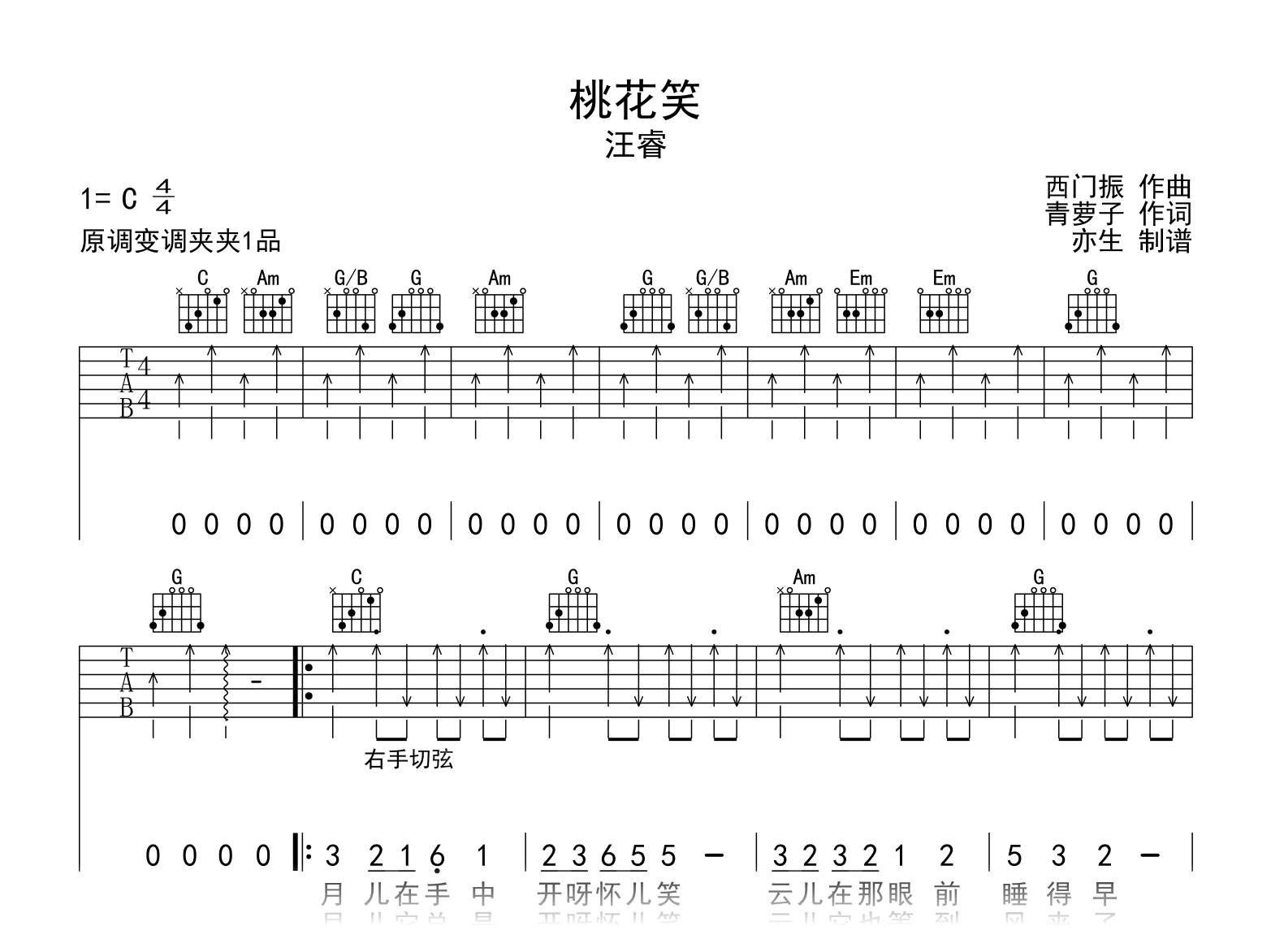 桃花笑吉他谱 - 汪睿 - C调吉他弹唱谱