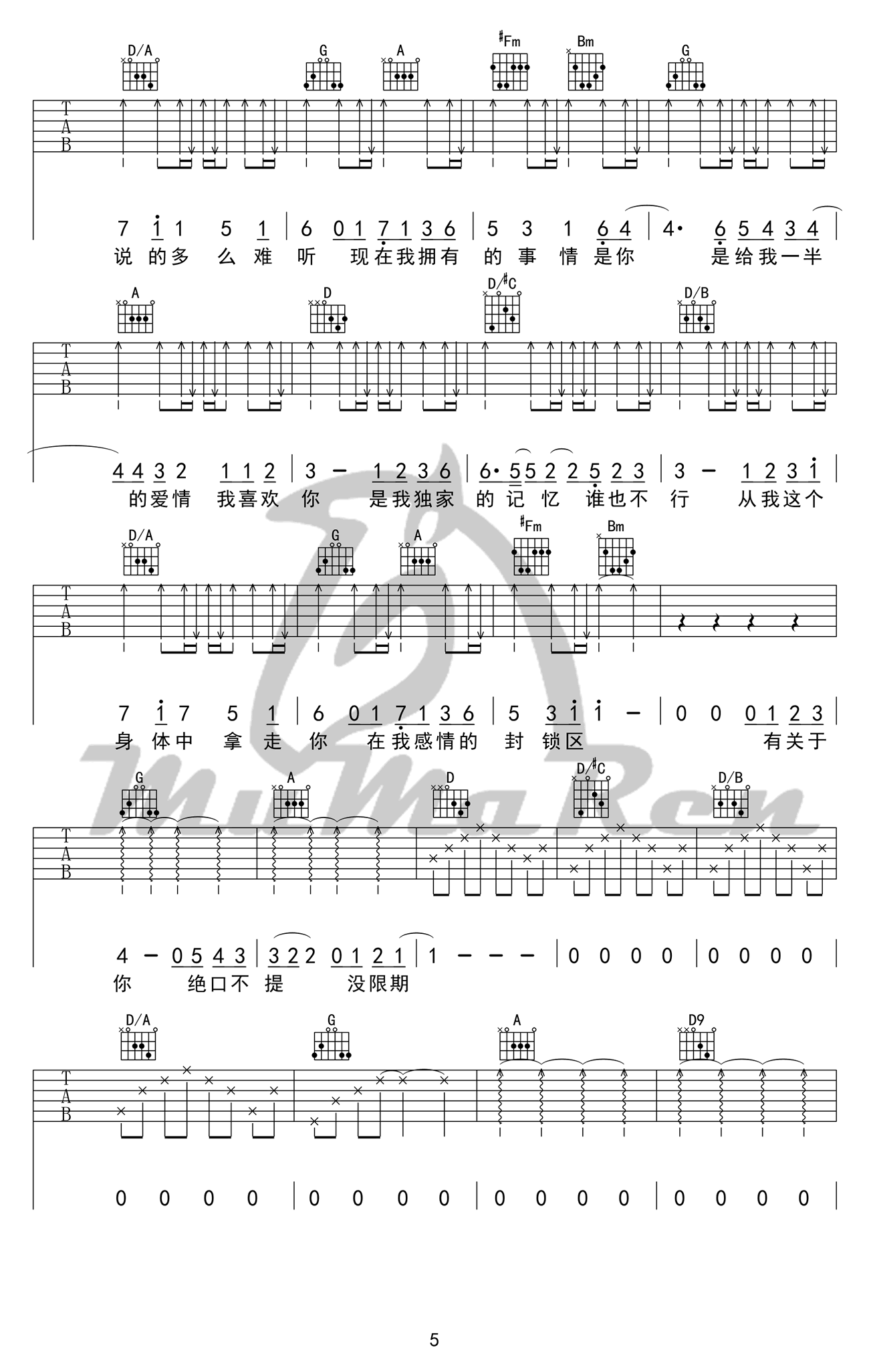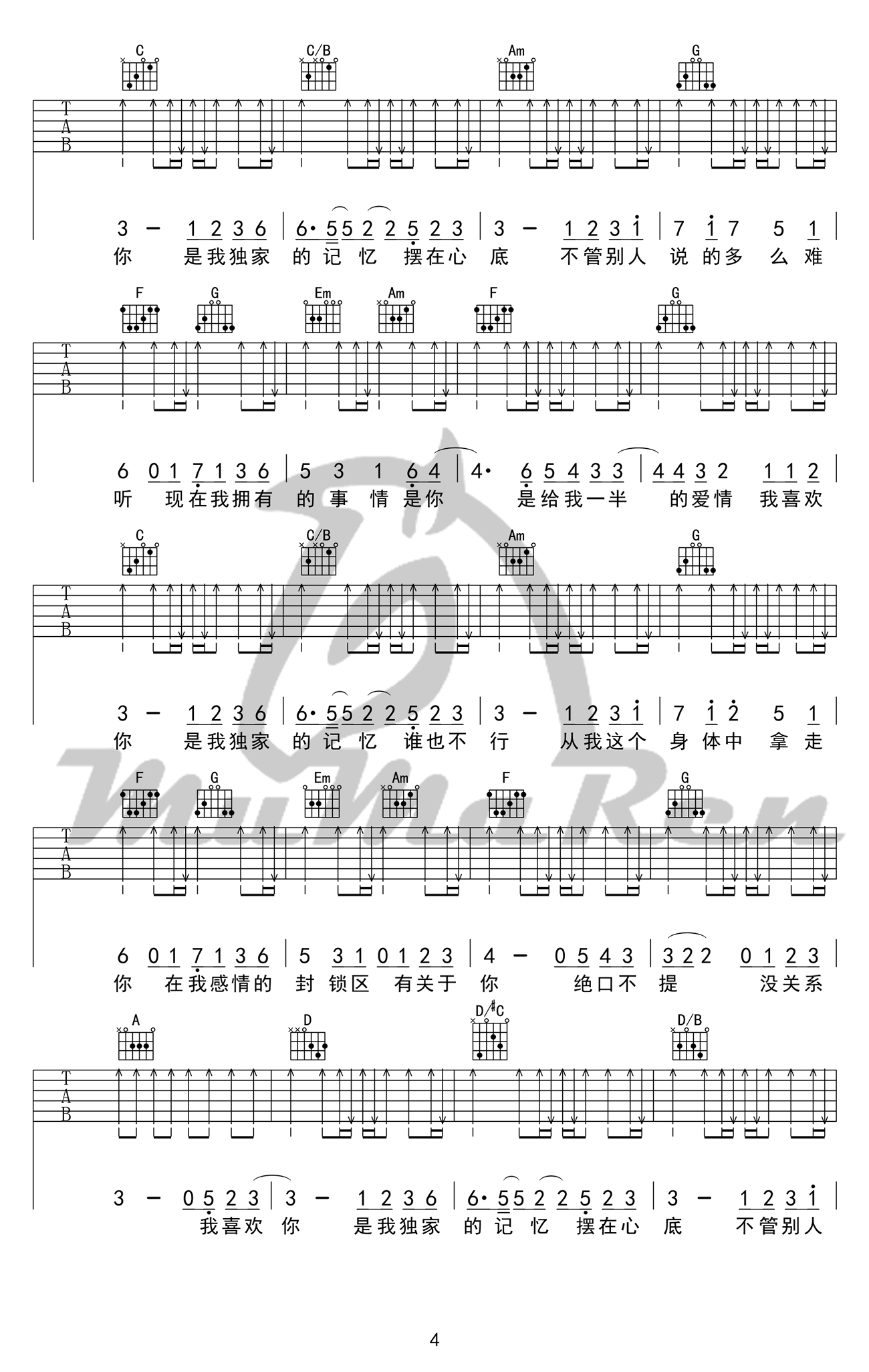 当前位置:琴谱网>吉他弹唱>独家记忆