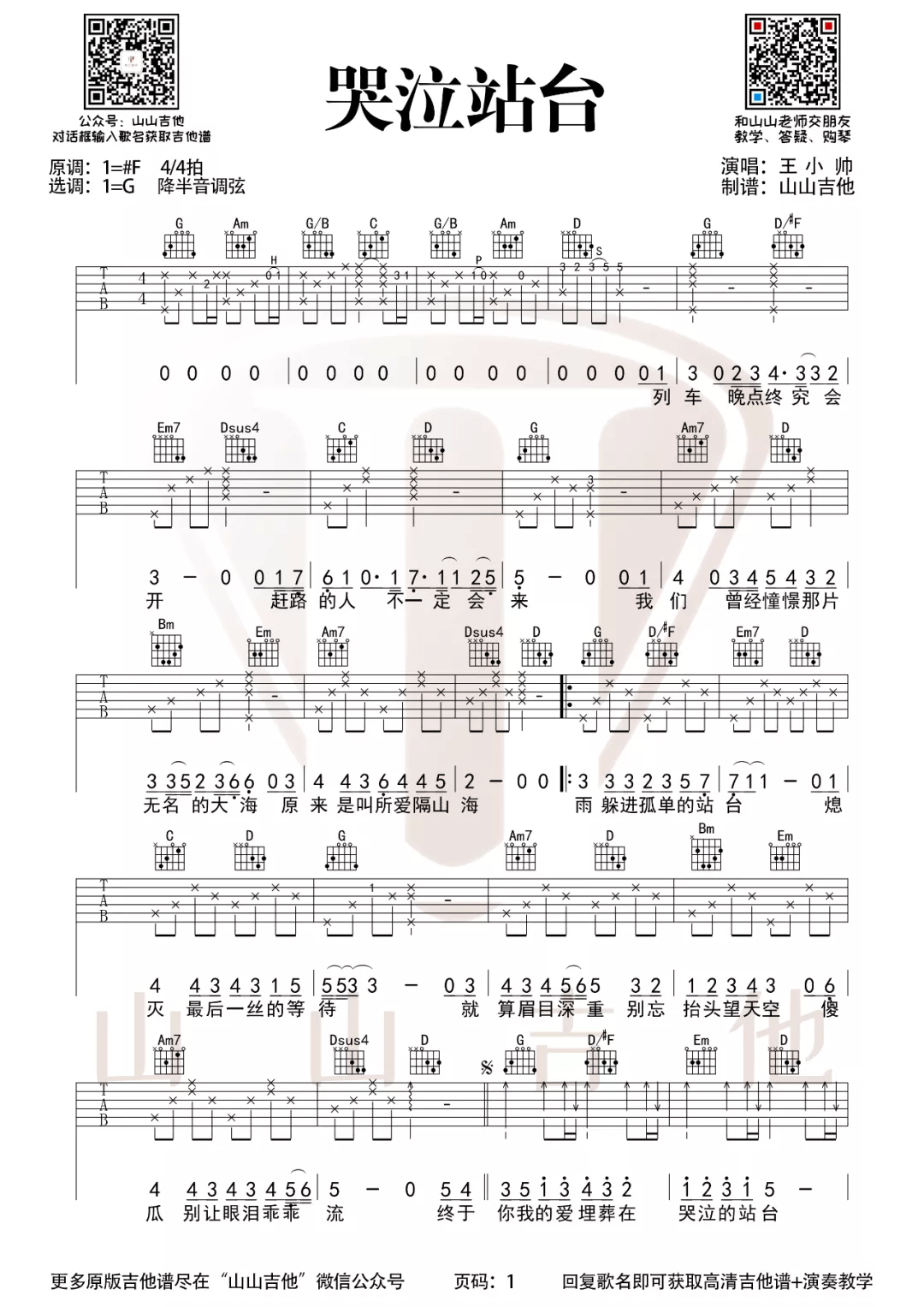 哭泣站台吉他谱 - 王小帅 - G调吉他弹唱谱