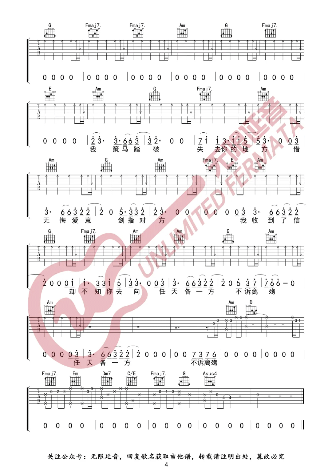 曲谱介绍: 吉他谱介绍:洛城吉他谱,薛之谦演唱的一首歌曲,4/4拍的节奏,这首歌曲的原调为C调,这里曲谱采用了C调指法进行编配,演唱时可不夹变调夹,曲谱由琴谱网更新上传,共4张高清图片弹唱吉他谱例,来源于@无限延音编配出品。在这首歌曲中,薛之谦将目光聚焦于这座“洛城”中曾发生过的悲欢离合,不仅保持了其一贯的制作高水准,更在歌曲当中融入了一分侠士情怀。
