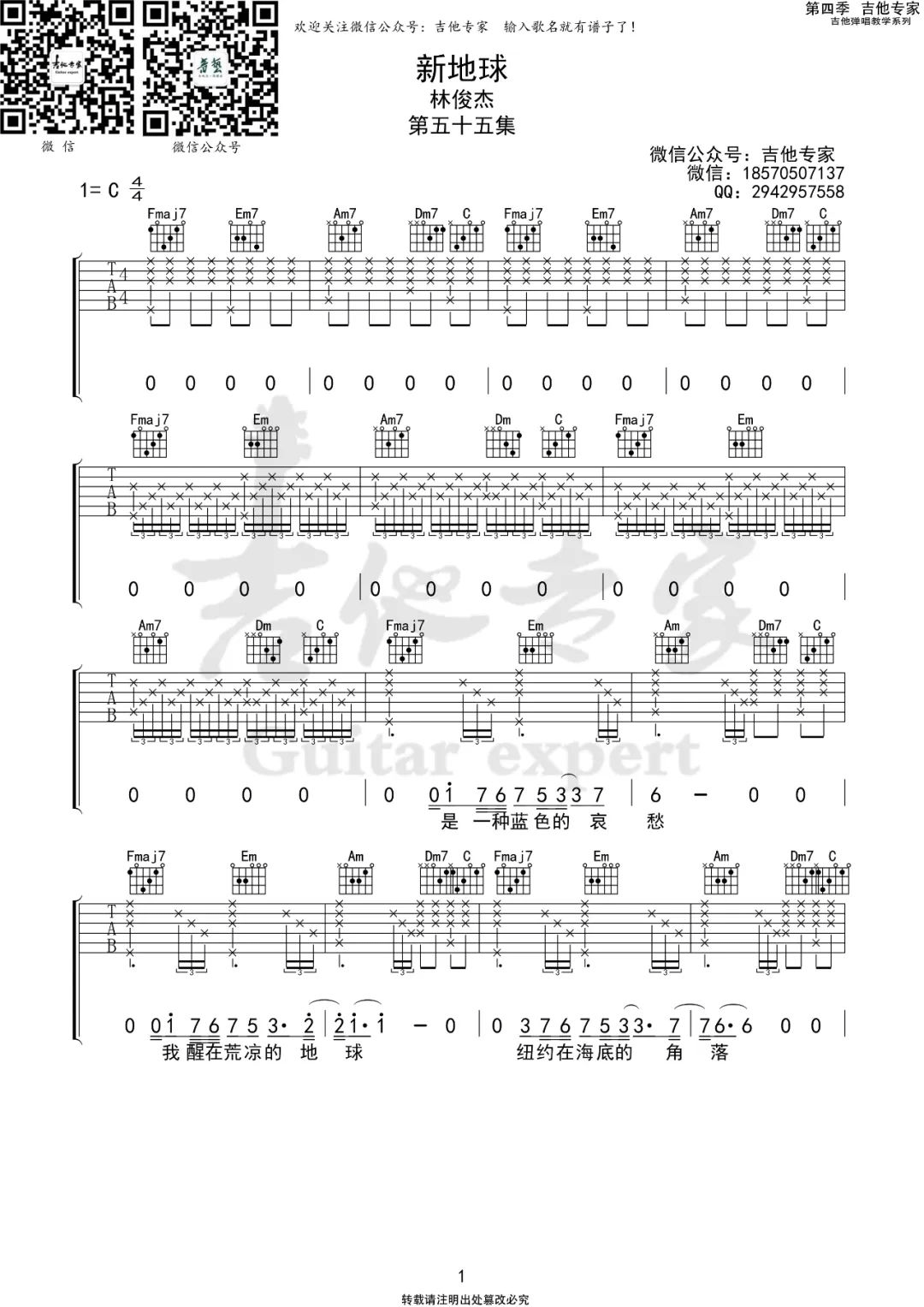 当前位置:琴谱网>吉他弹唱>新地球