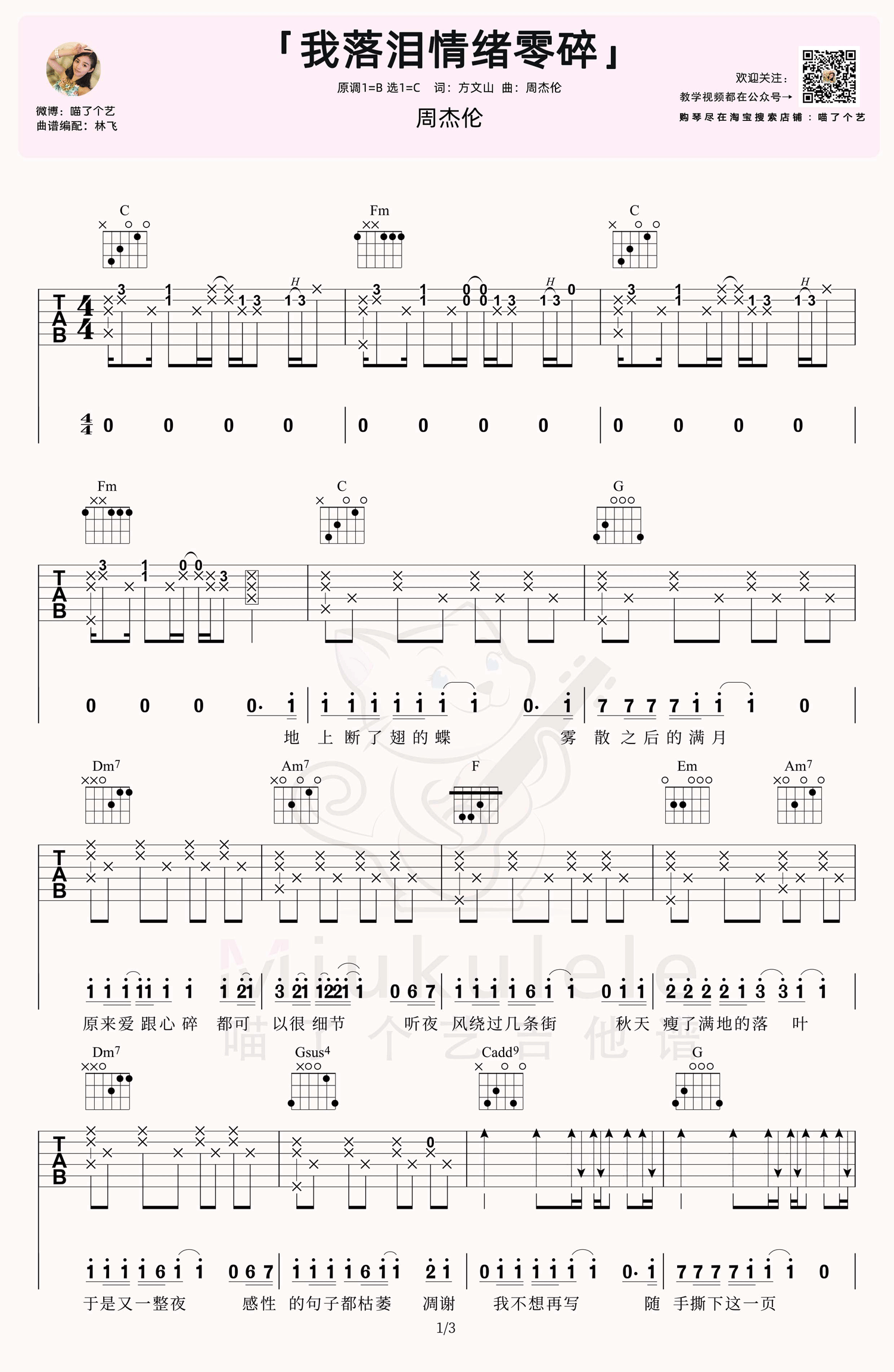 我落泪情绪零碎吉他谱 - 周杰伦 - C调吉他弹唱谱 - 原版