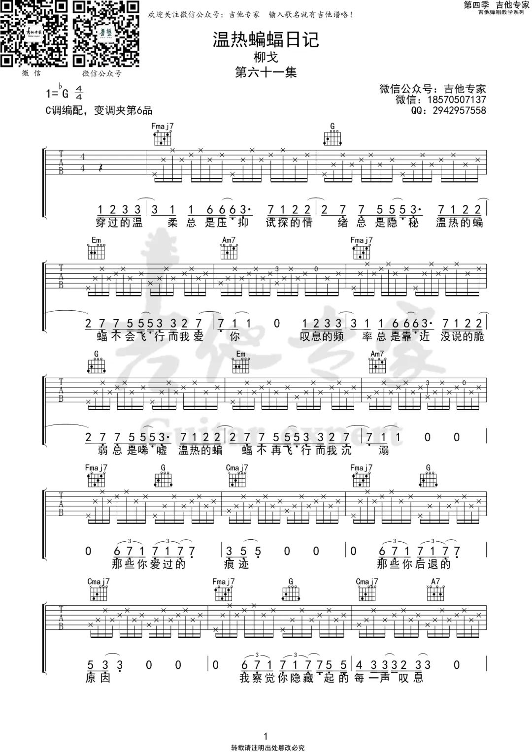 温热蝙蝠日记吉他谱 - 柳戈 - C调吉他弹唱谱 - 原版