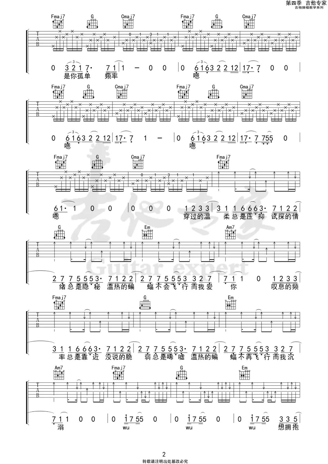 当前位置:琴谱网>吉他弹唱>温热蝙蝠日记