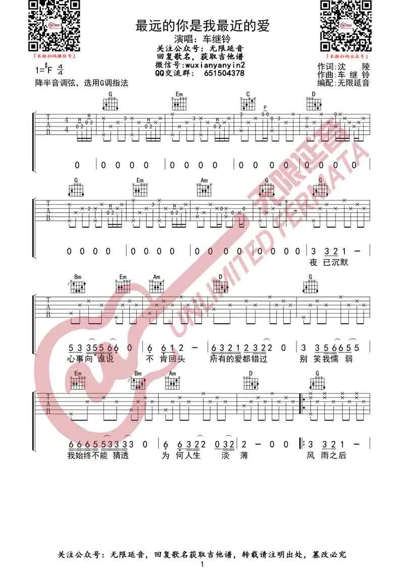 最远的你是我最近的爱吉他谱 - 车继铃 - G调吉他弹唱谱 - 原版