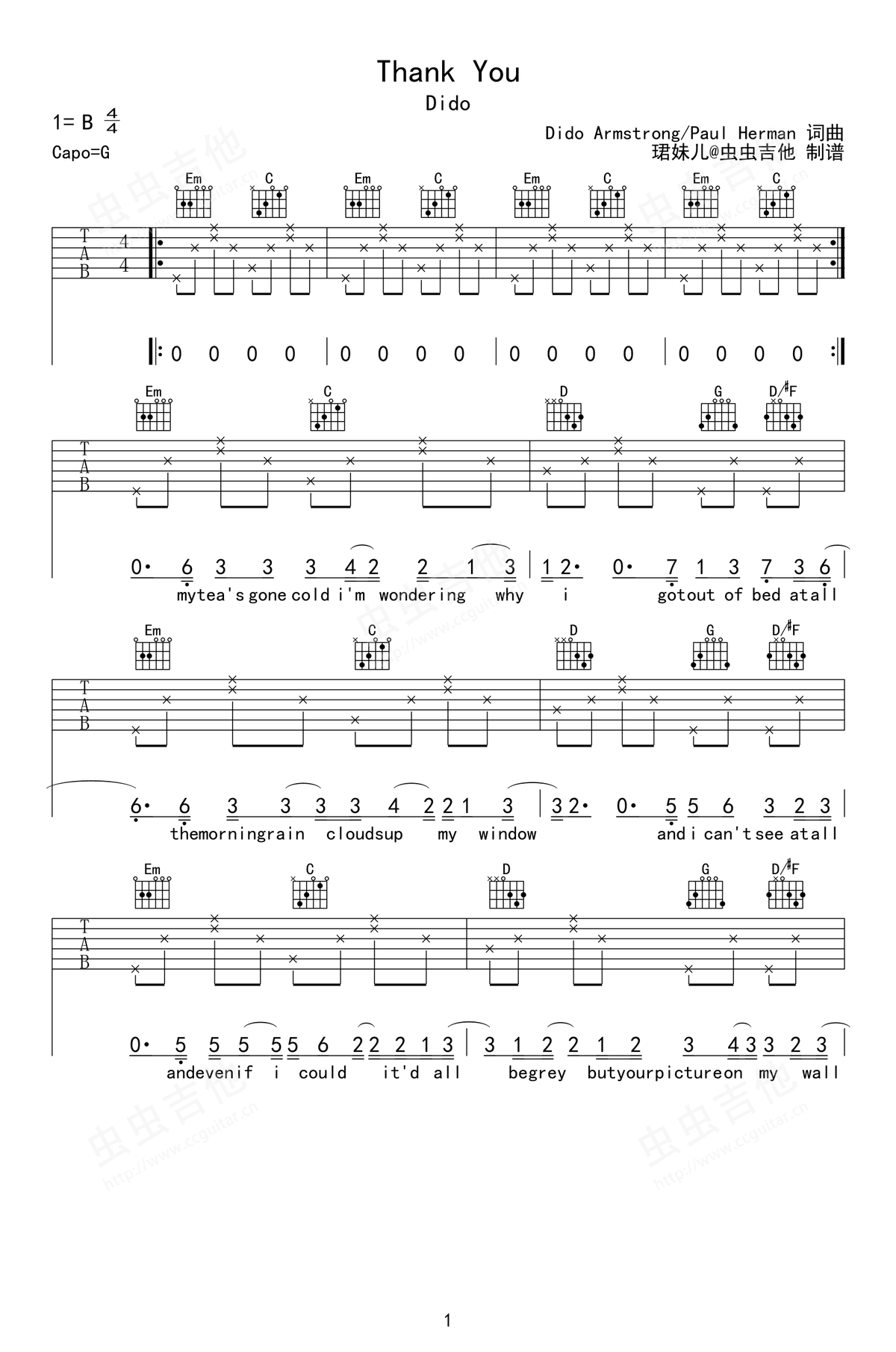 Thank You吉他谱 - Thank - G调吉他弹唱谱