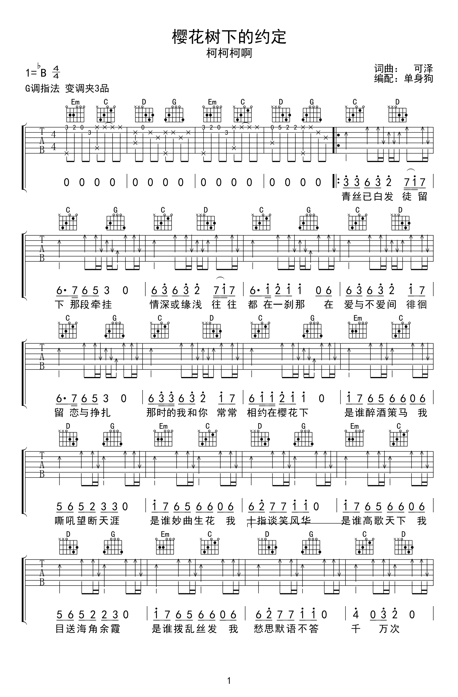 樱花树下的约定吉他谱 - 柯柯柯啊 - G调吉他弹唱谱