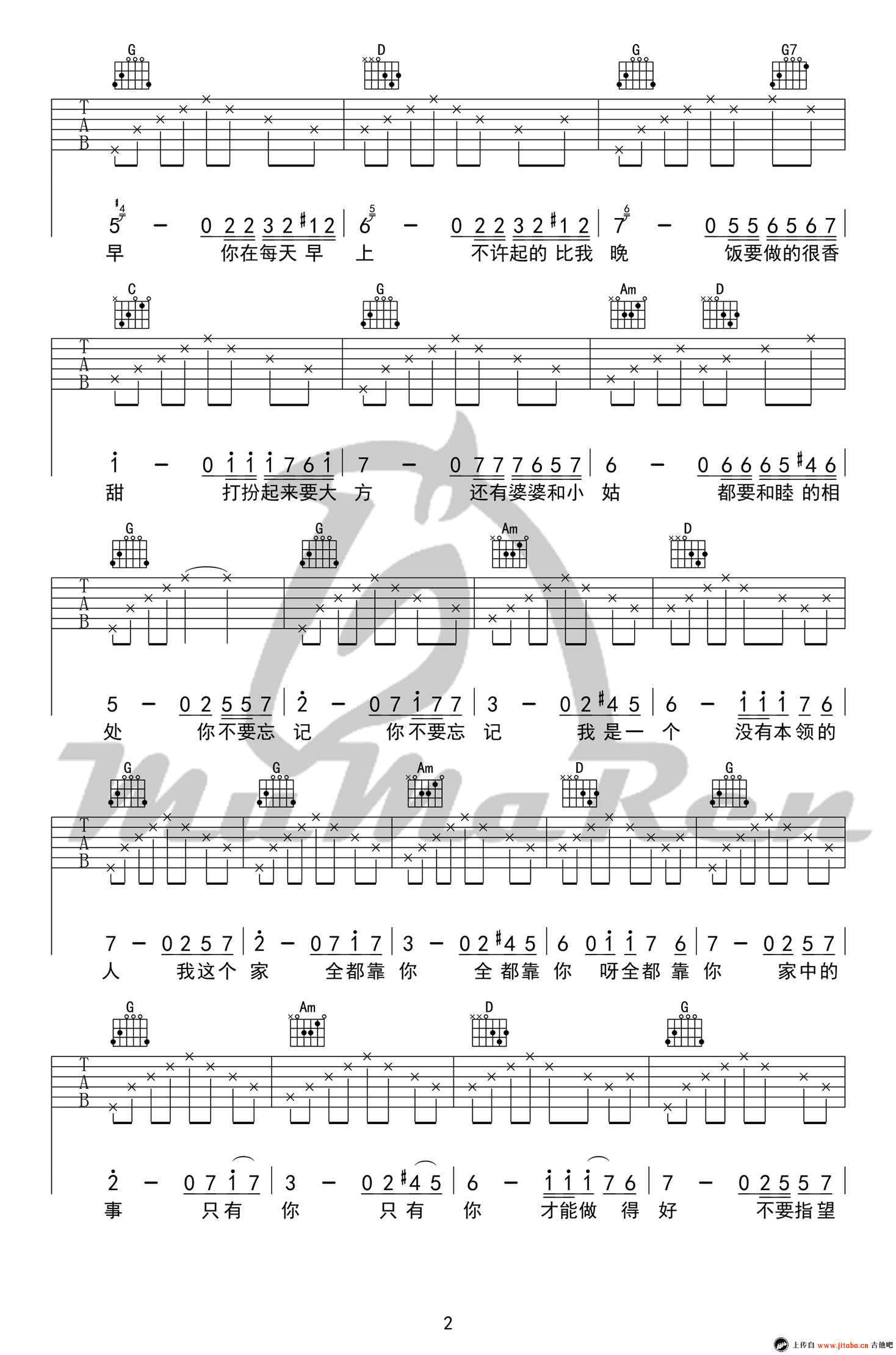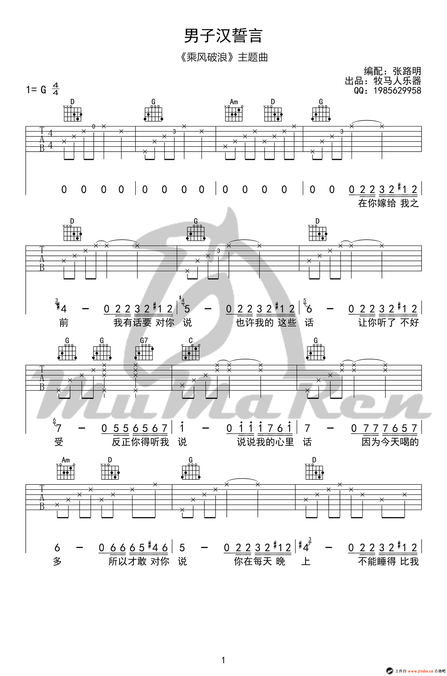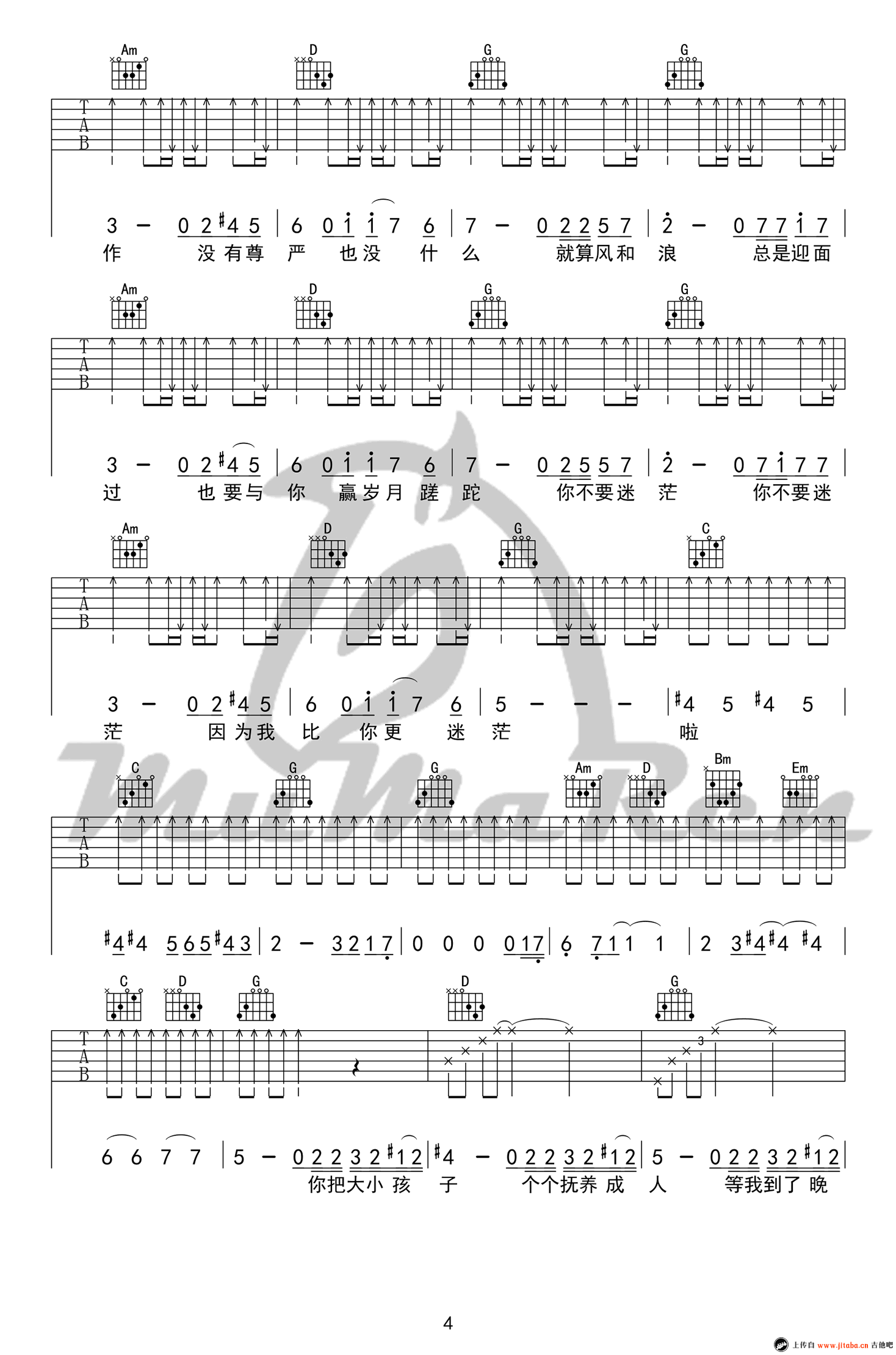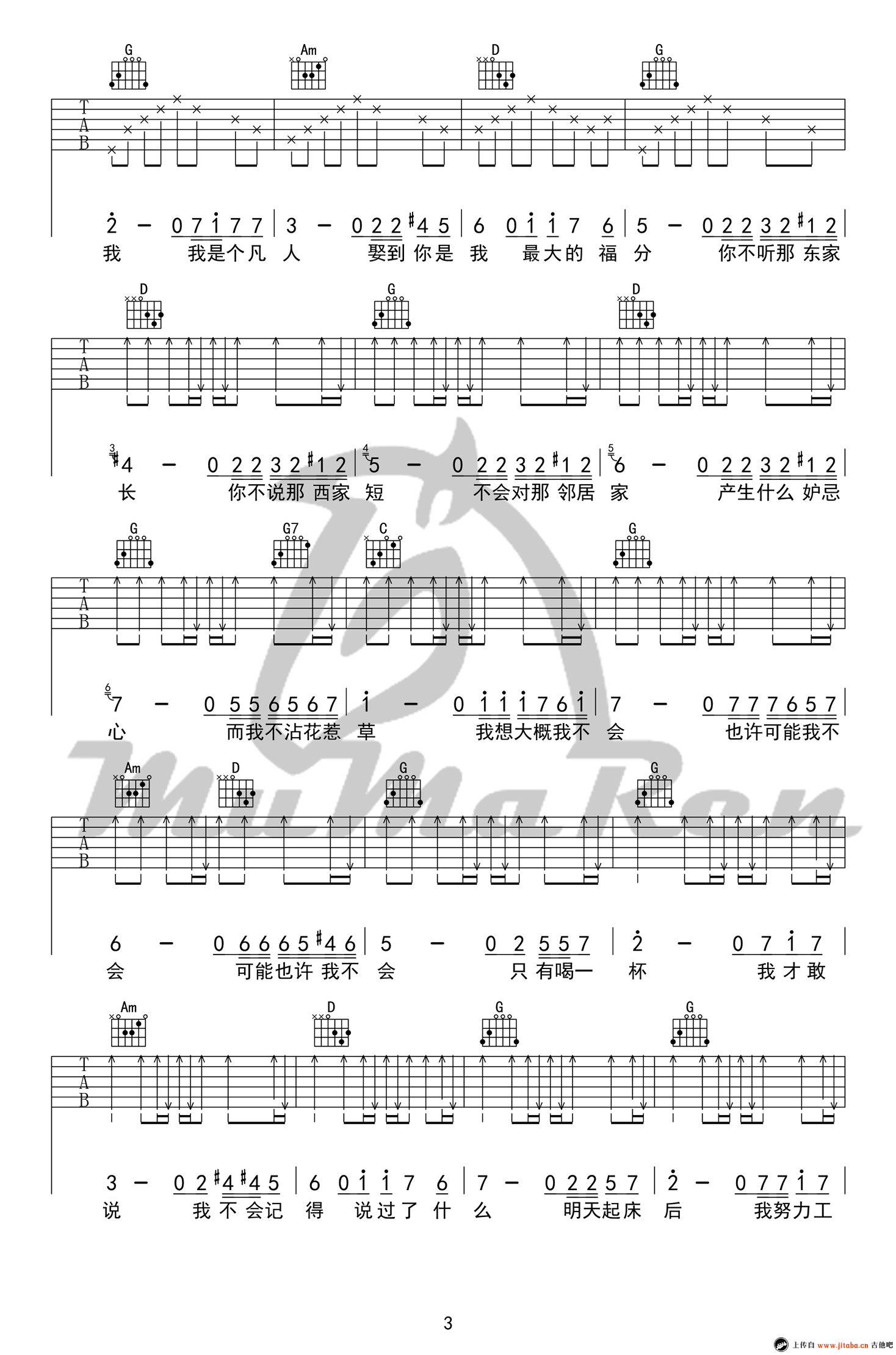 吉他弹唱G调来源:牧马人乐器--张路明780 浏览2018-03-19 13:34发布图谱共5页