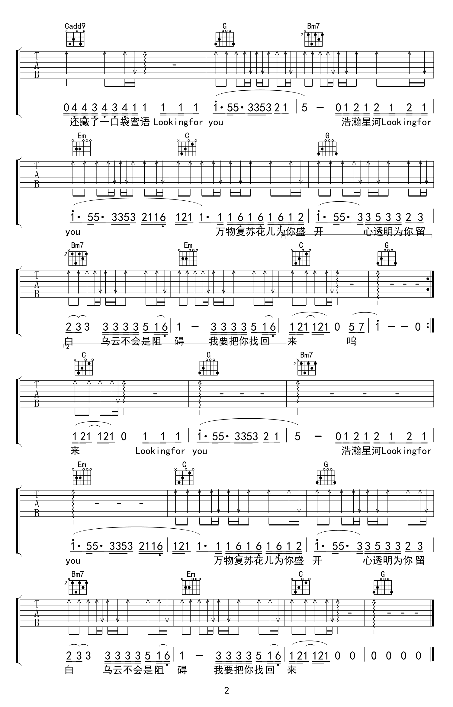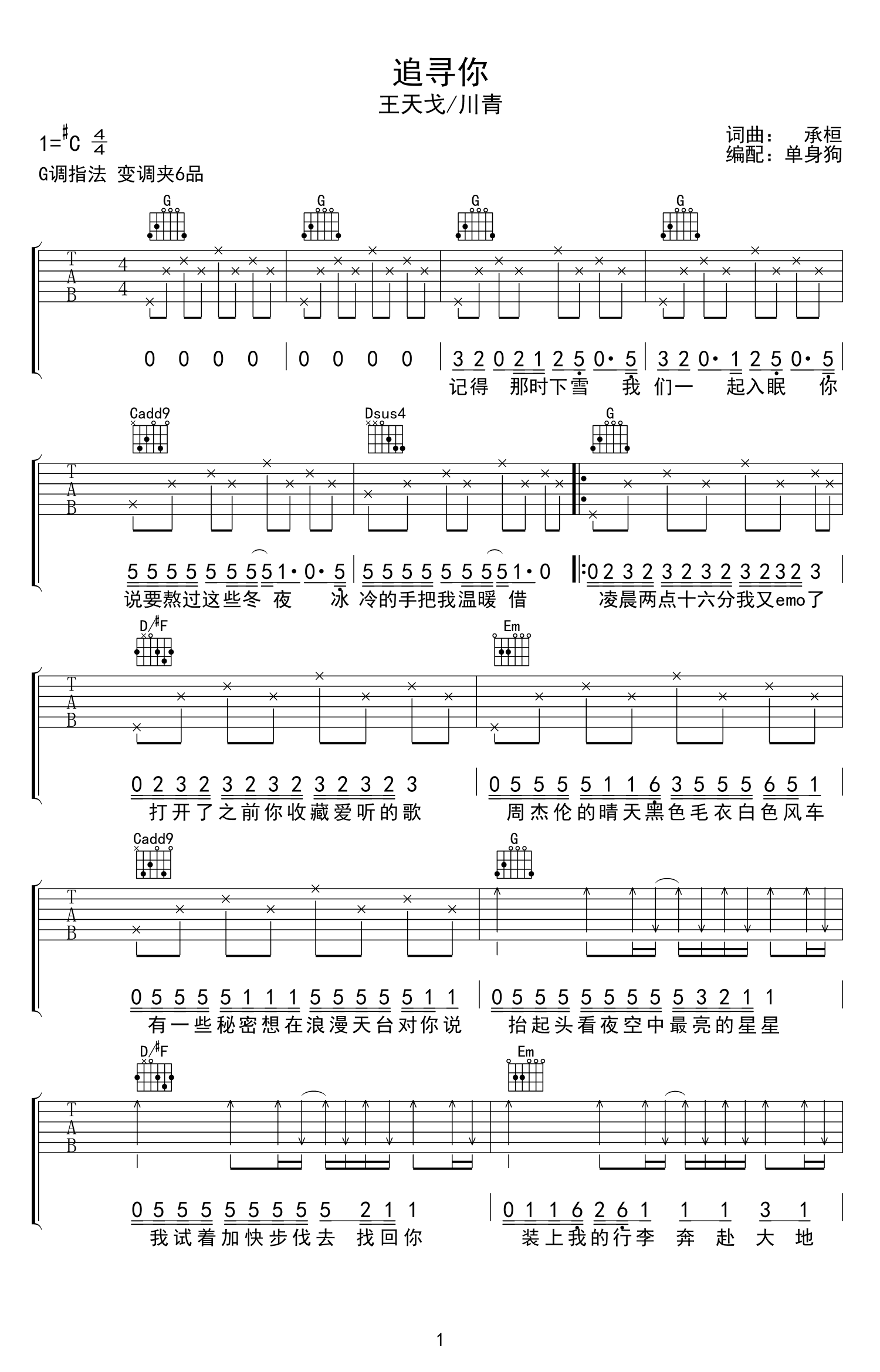 追寻你吉他谱 - 王天戈/川青 - G调吉他弹唱谱