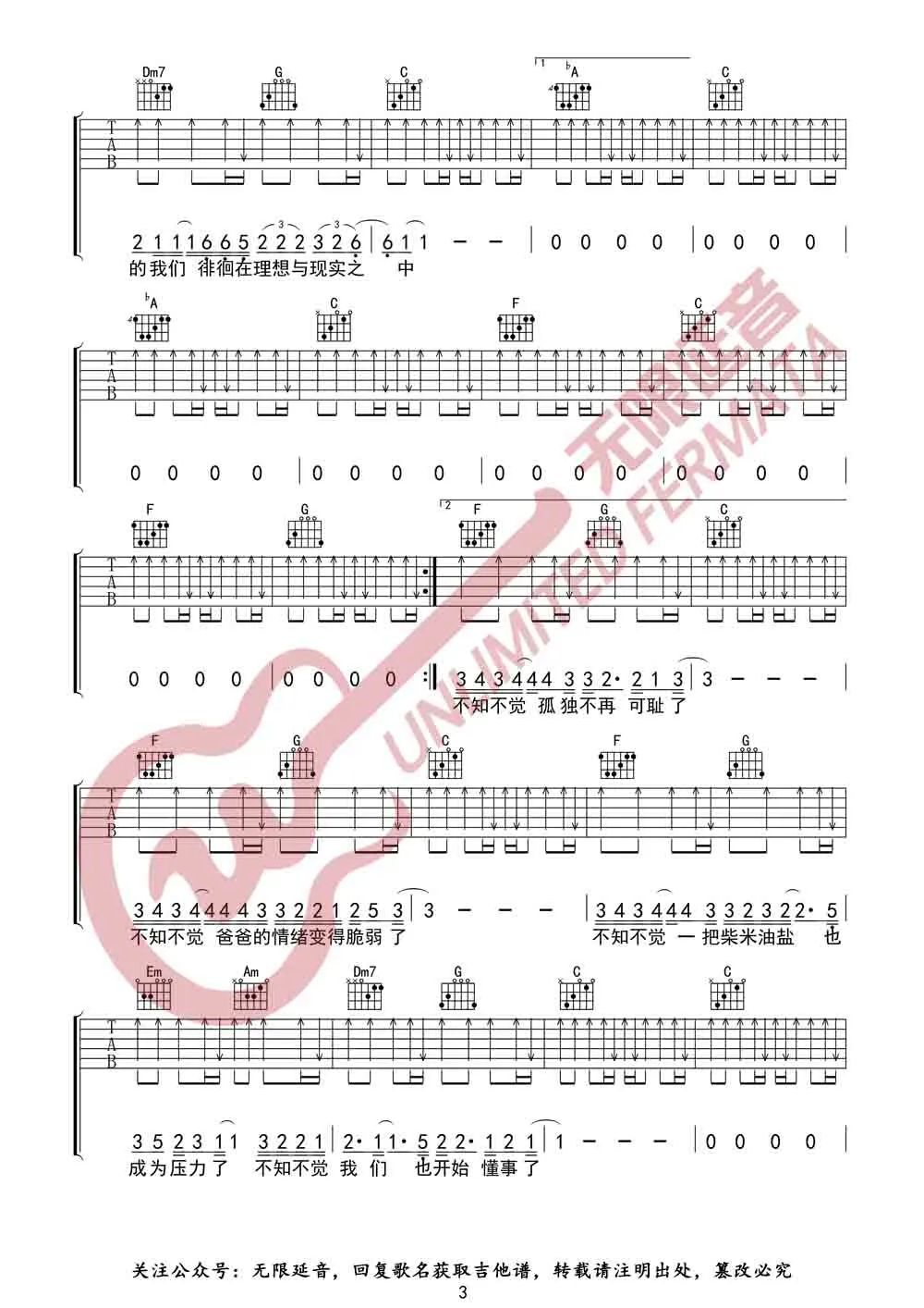 曲谱介绍: 吉他谱介绍:这个年纪吉他谱,齐一演唱的一首歌曲,4/4拍的节奏,这首歌曲的原调为F调,这里曲谱采用了C调指法进行编配,演唱时夹变调夹5品可回到原调,也可根据个人实际嗓音情况选择。曲谱由琴谱网更新上传,共4张高清图片弹唱吉他谱例,来源于@无限延音编配出品。这首歌的创作思路来源于内心深处压抑很久的一种情绪,而立之年的我们总是忙于奔波,忙于工作,忙于生活,忙于照顾家人,还没来得及好好体验, 青春就一闪而过,我们就老了。