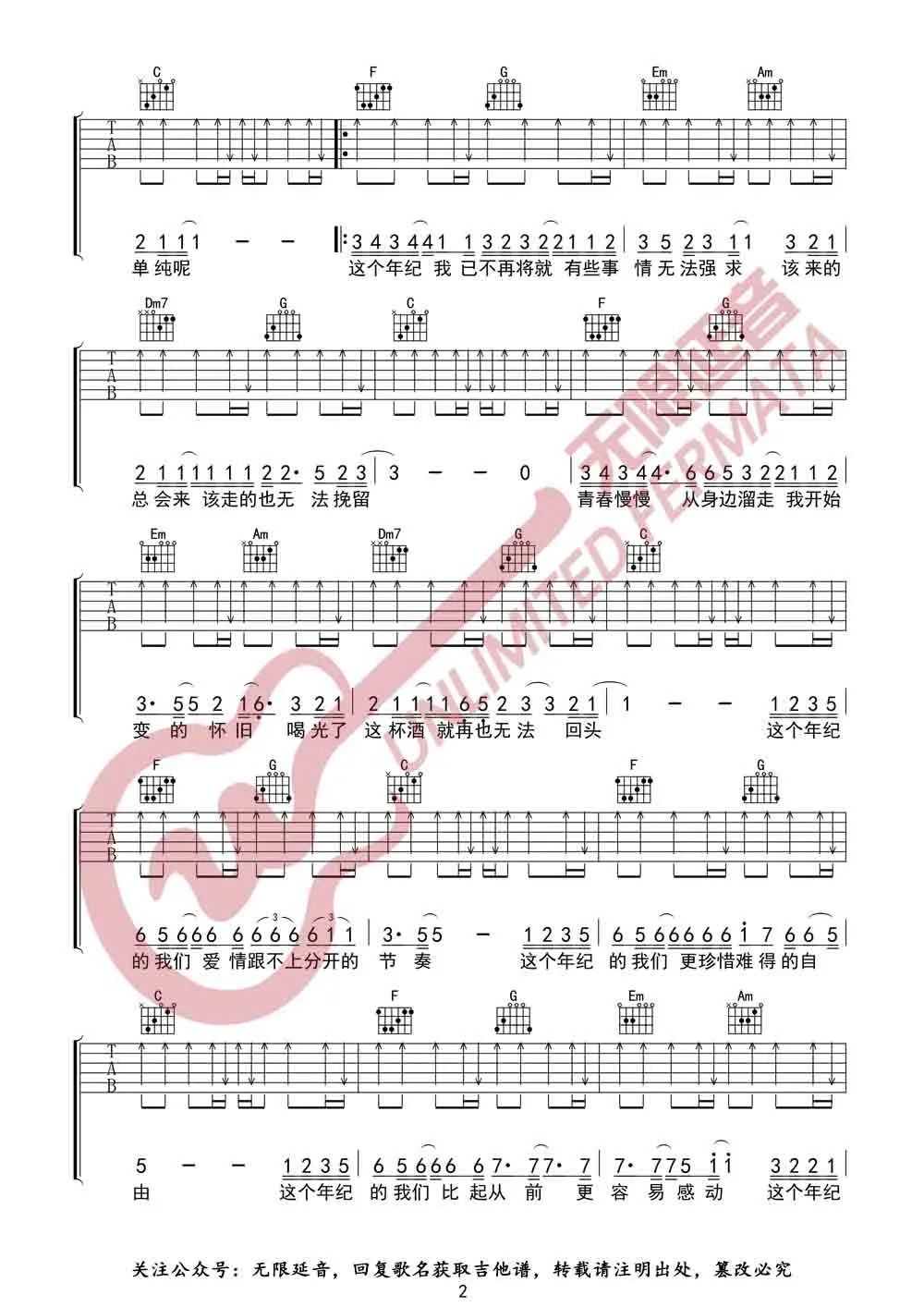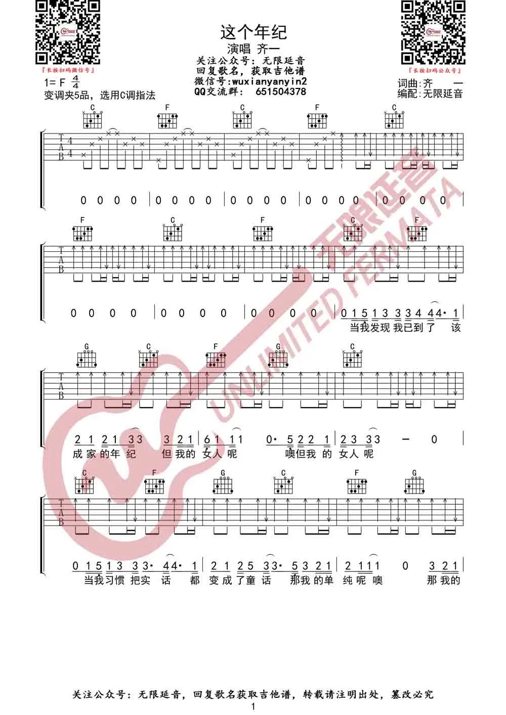 这个年纪吉他谱 - 齐一 - C调吉他弹唱谱
