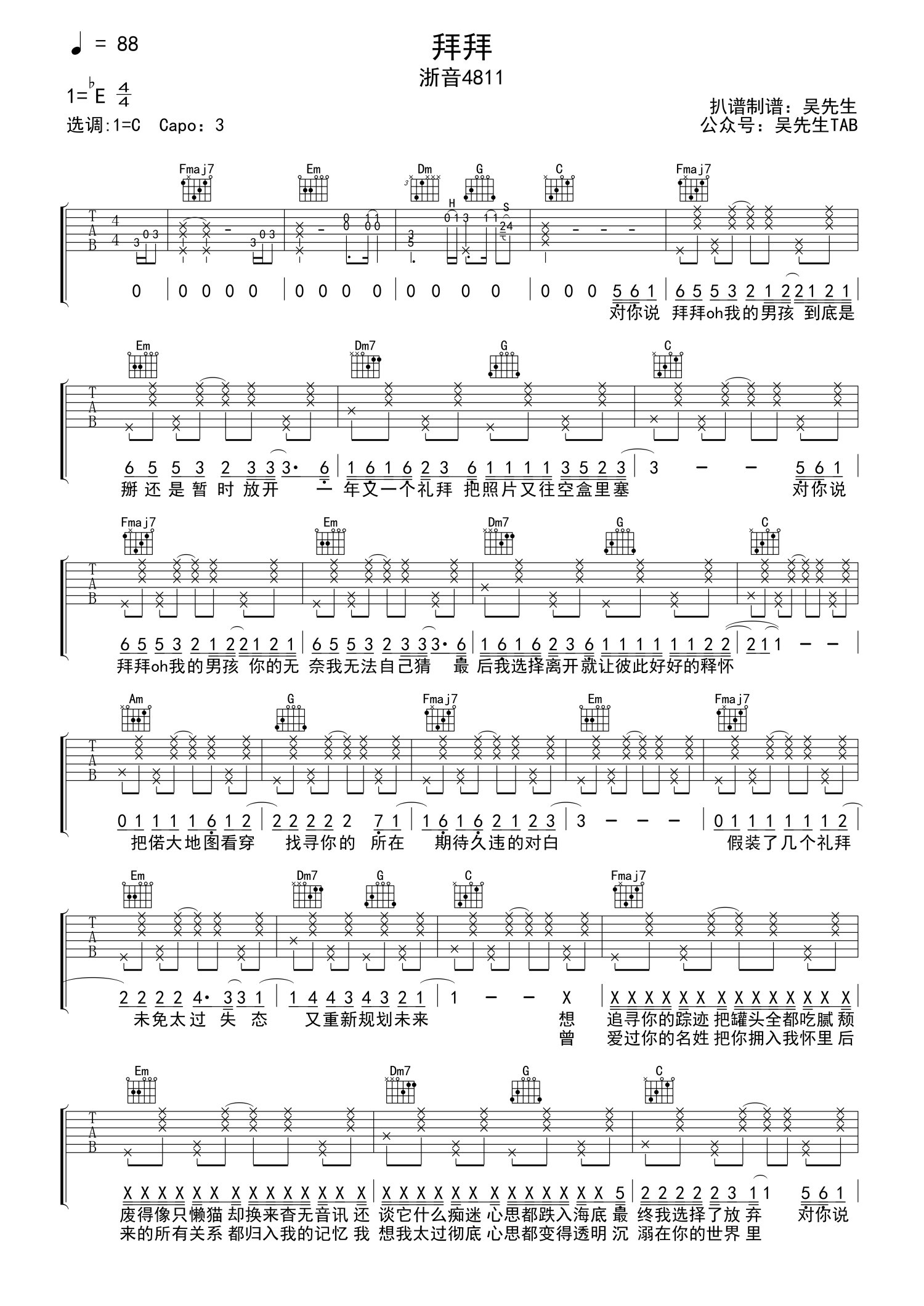 • 拜拜吉他谱 - 浙音4811 - C调吉他弹唱谱第1张