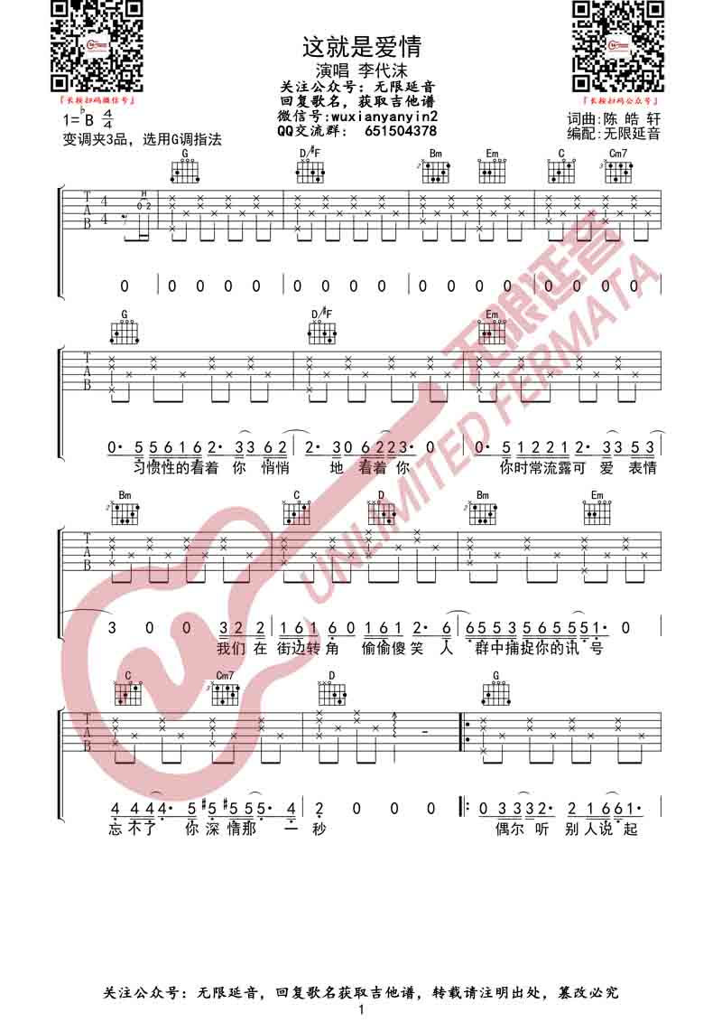 这就是爱情吉他谱 - 李代沫 - G调吉他弹唱谱 - 原版