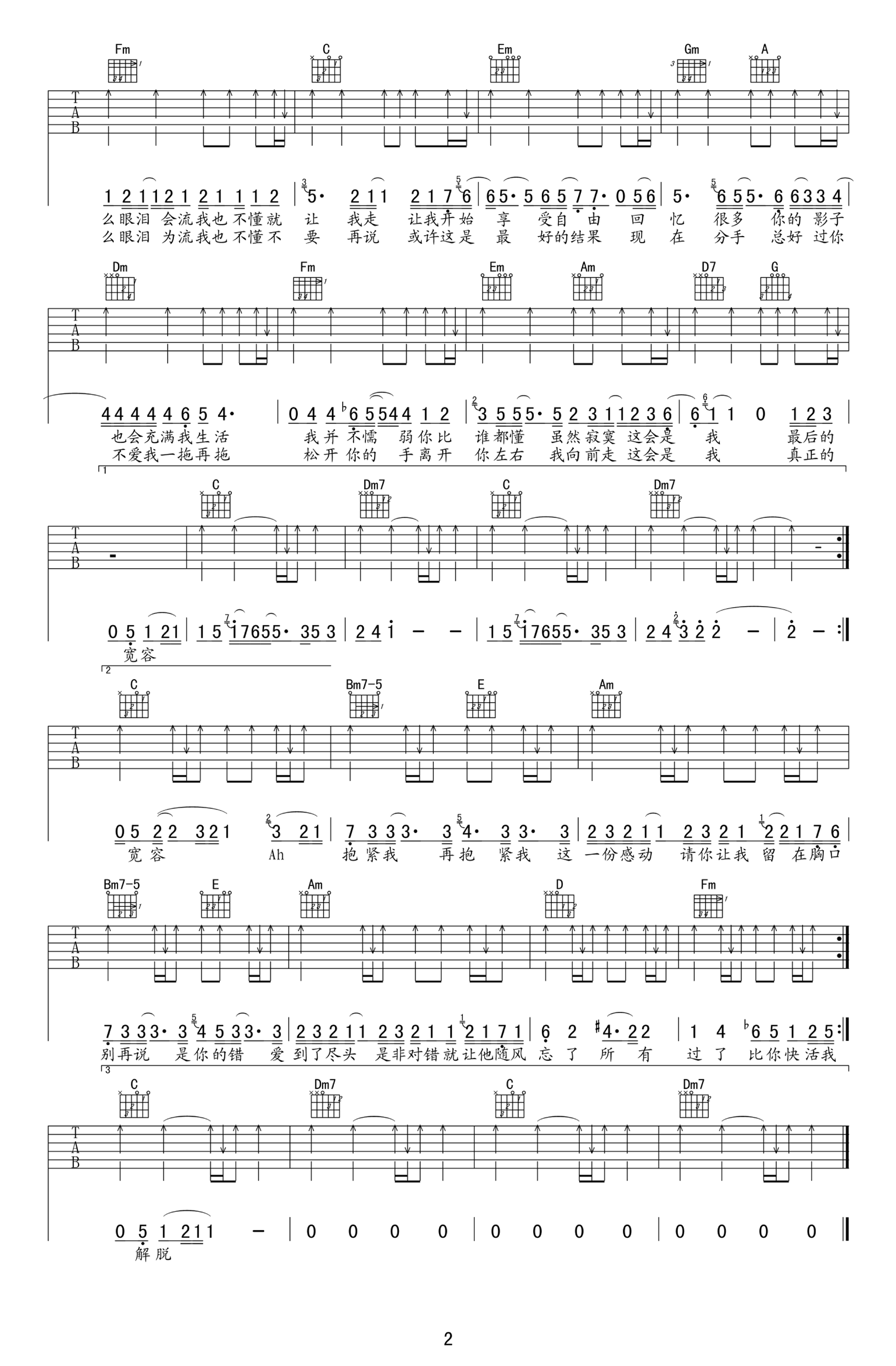当前位置:琴谱网>吉他弹唱>我不难过