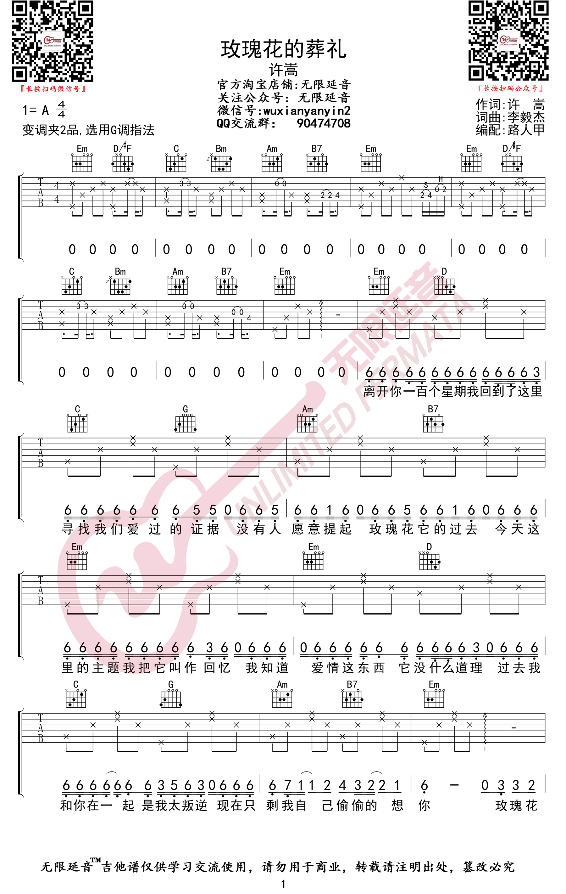 玫瑰花的葬礼吉他谱 - 许嵩 - G调吉他弹唱谱 - 原版