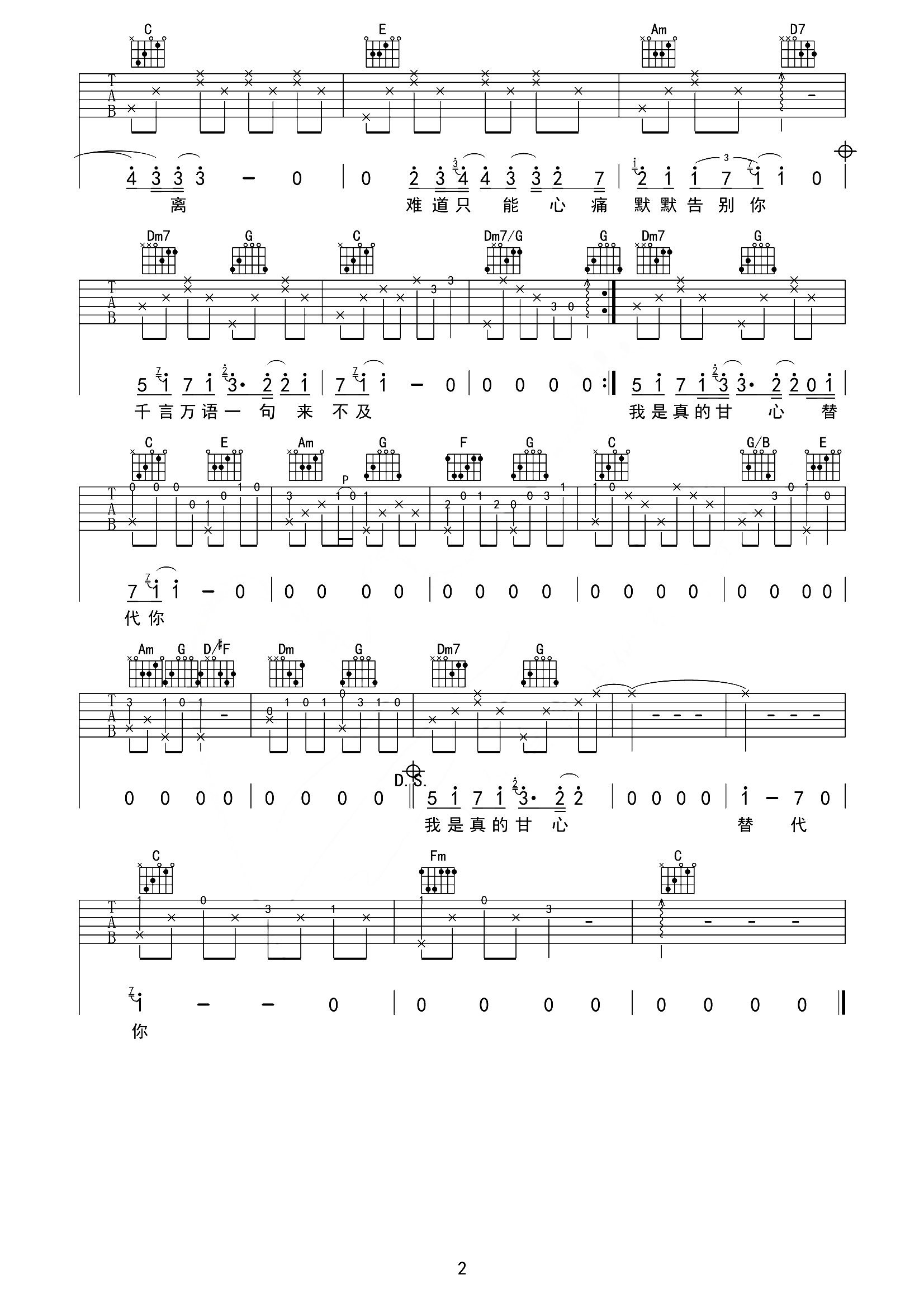 当前位置:琴谱网>吉他弹唱>甘心替代你