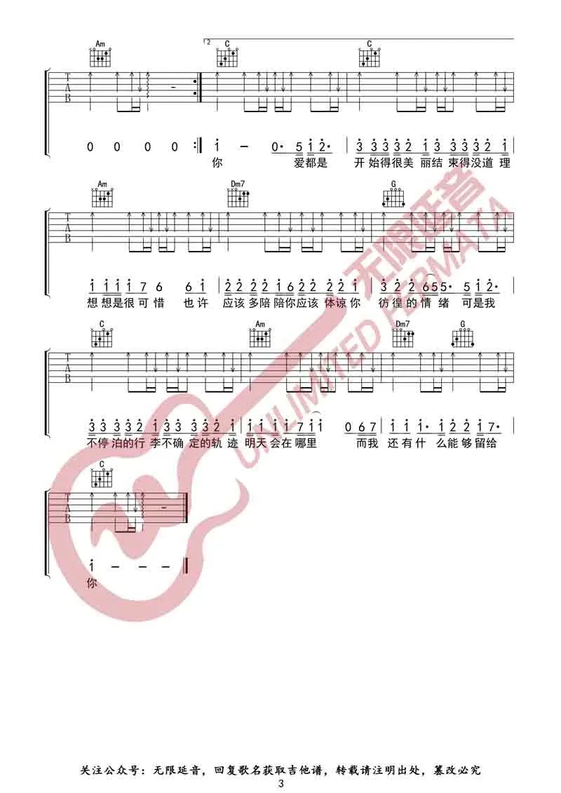 当前位置:琴谱网>吉他弹唱>留什么给你