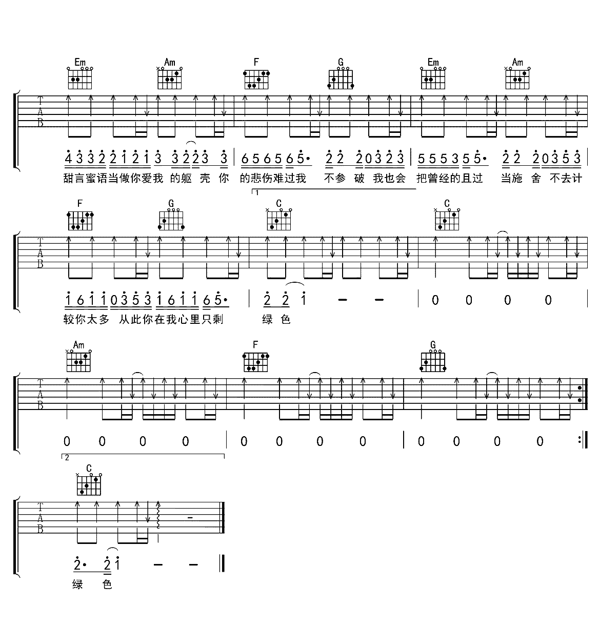 当前位置:琴谱网>吉他弹唱>绿色