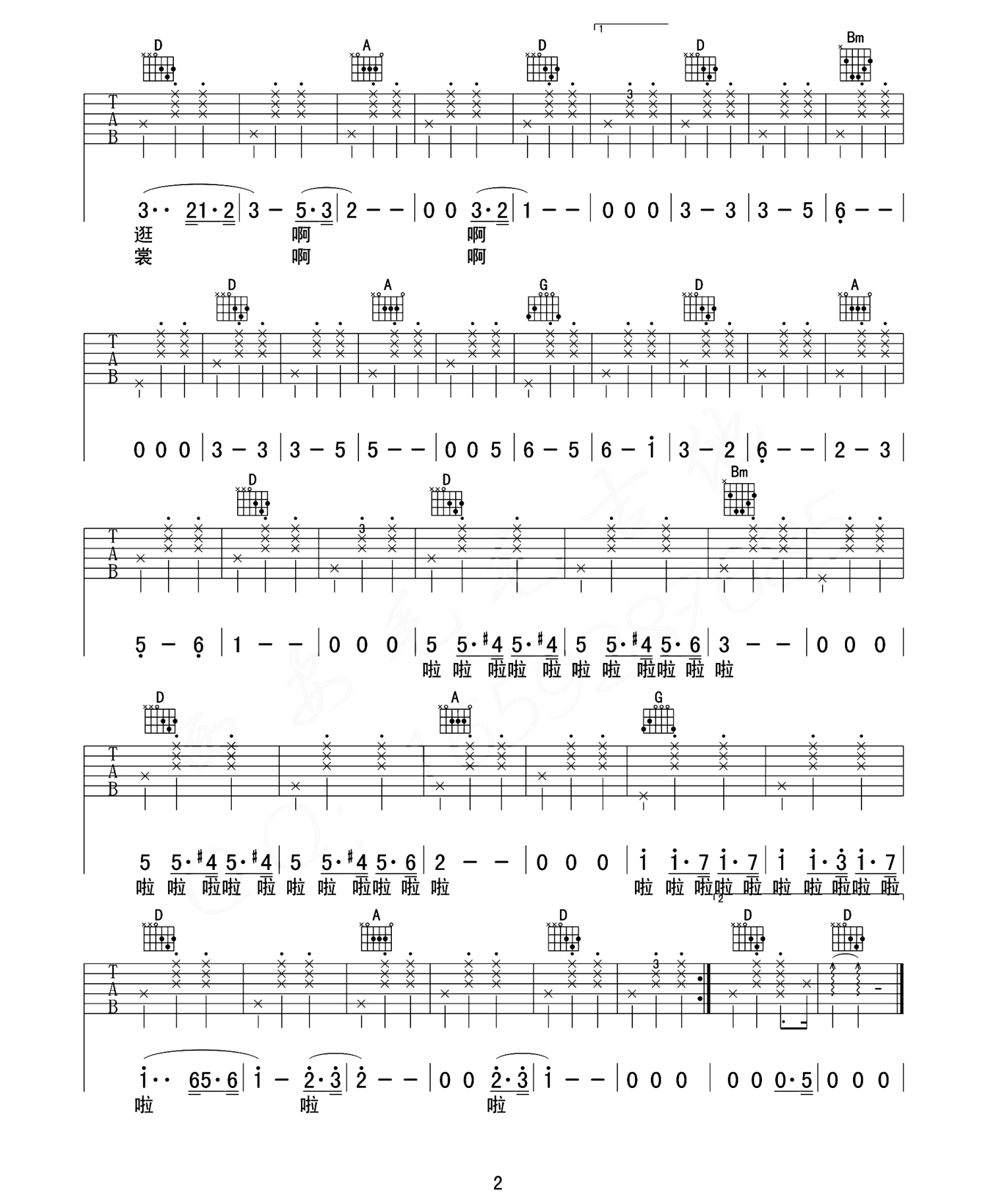 吉他弹唱D调来源:西安毛毛吉他961 浏览2019-09-20 15:23发布图谱共3页