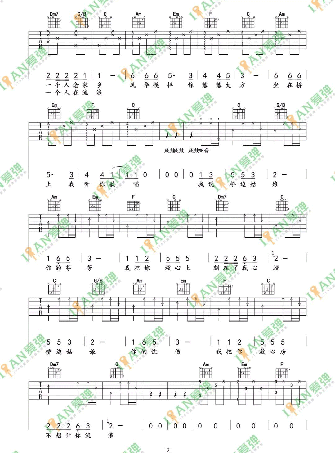 当前位置:琴谱网>吉他弹唱>桥边姑娘