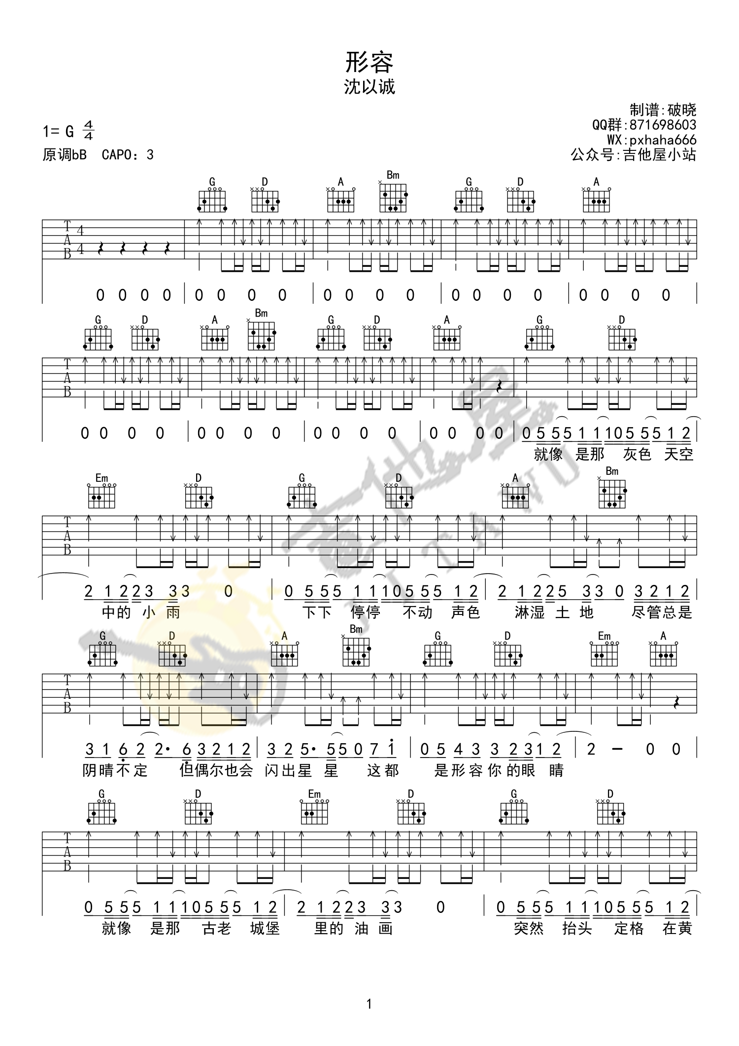 形容吉他谱 - 沈以诚 - G调吉他弹唱谱 - 原版
