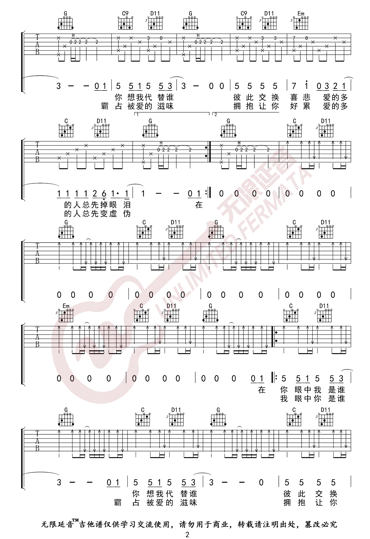 谁吉他谱 - 廖俊涛 - G调吉他弹唱谱 - 原版