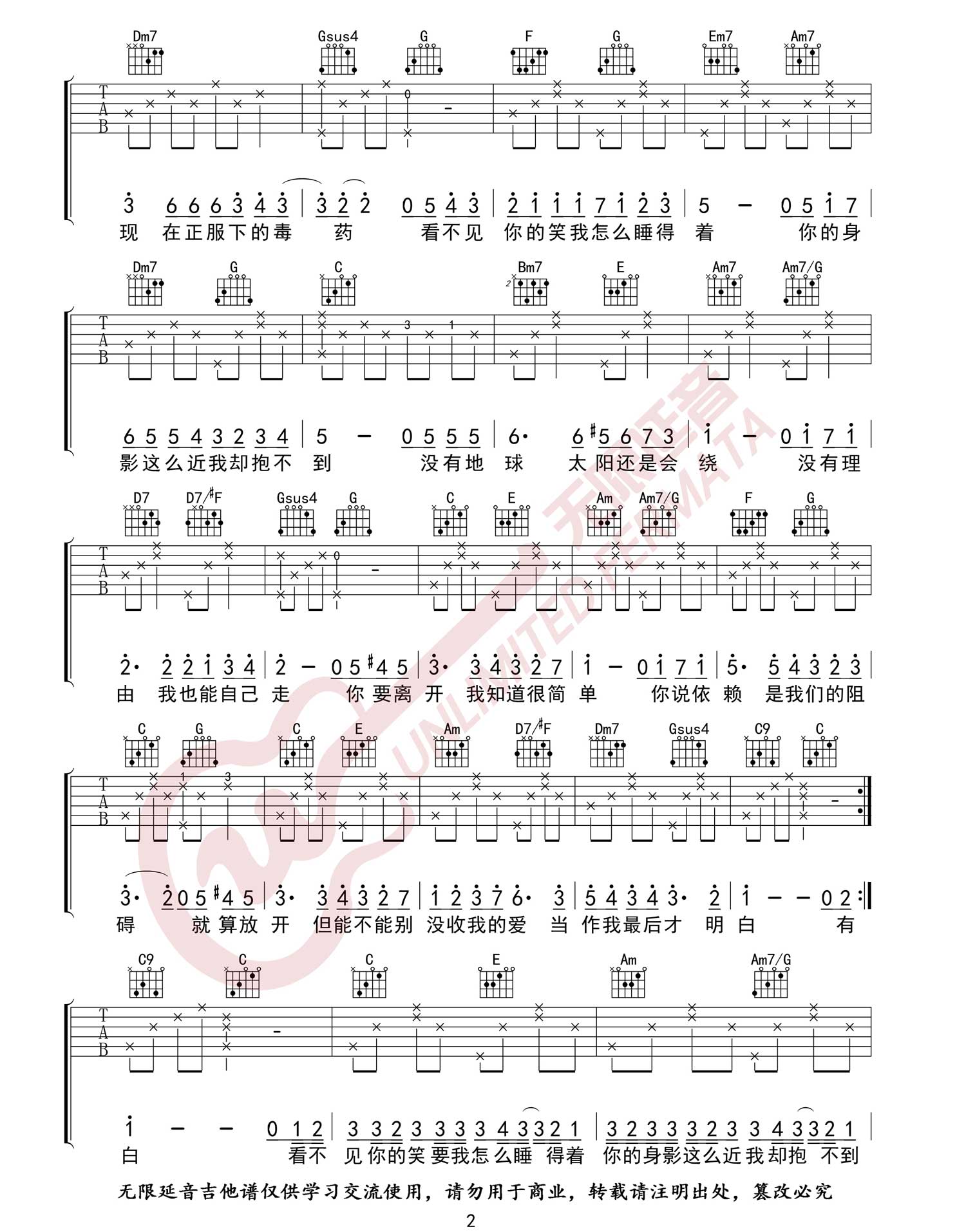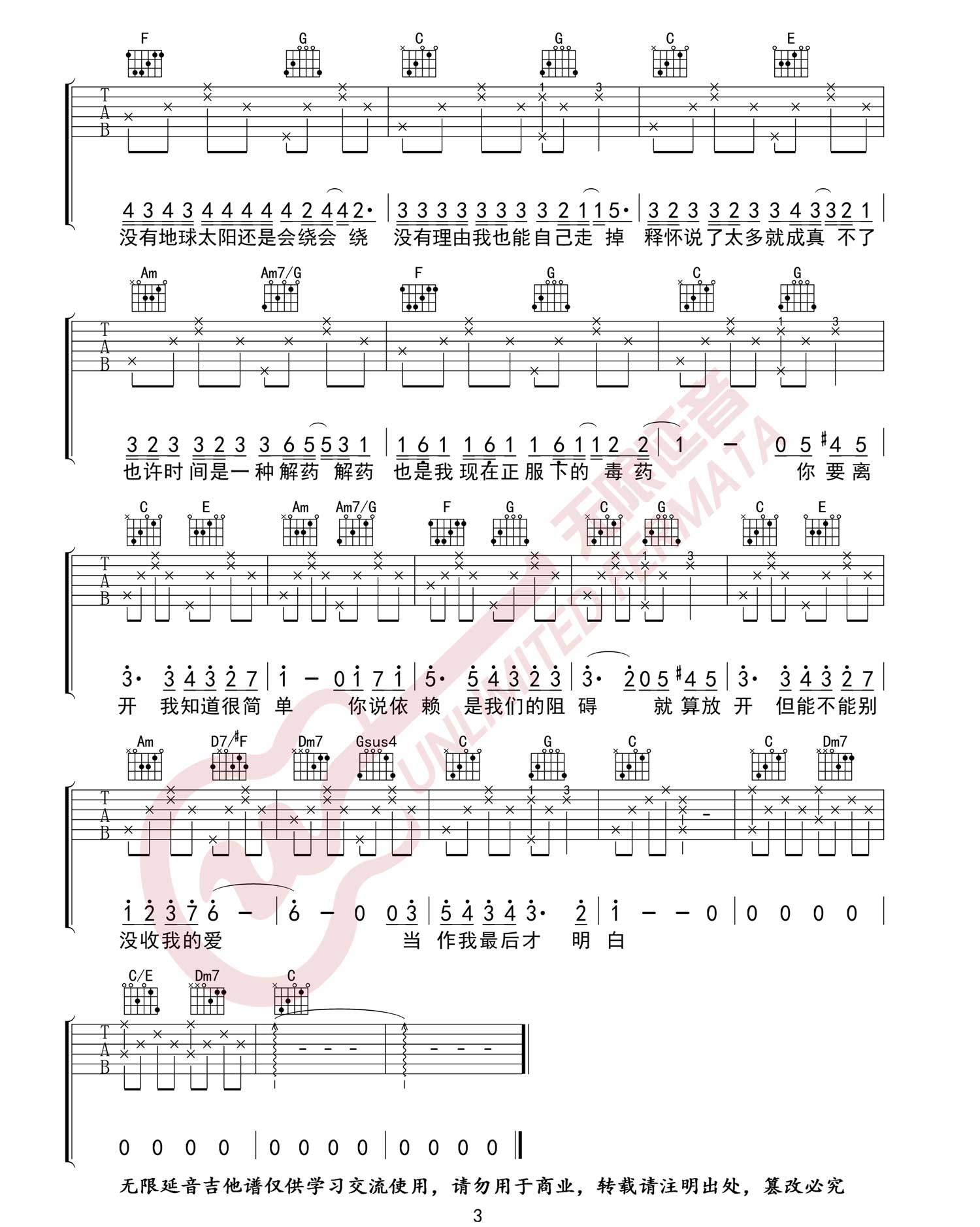曲谱介绍: 吉他谱介绍:彩虹吉他谱,周杰伦演唱的一首歌曲,4/4拍的节奏,这首歌曲的原调为C调,这里曲谱采用了C调指法进行编配,演唱时可不夹变调夹,曲谱由琴谱网更新上传,共3张高清图片弹唱吉他谱例,来源于@无限延音编配出品。