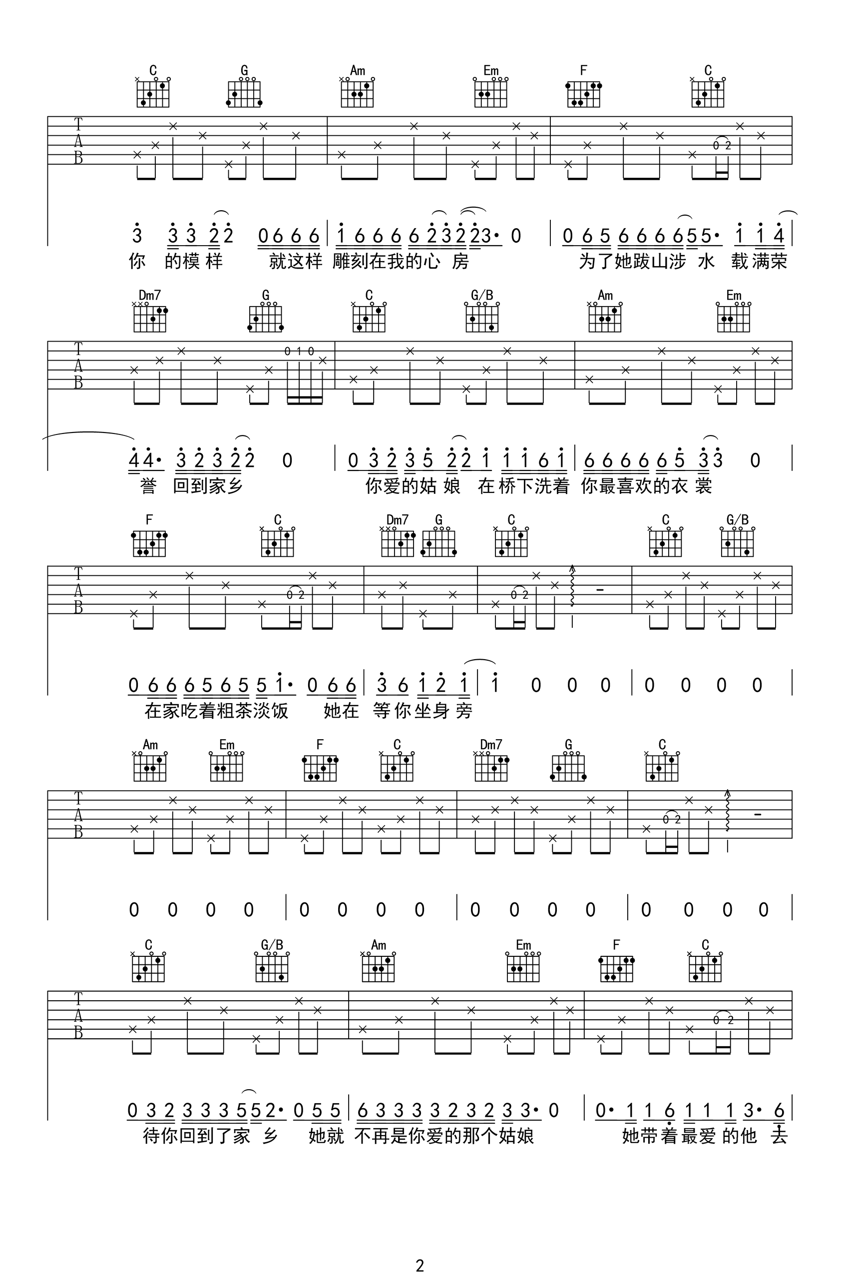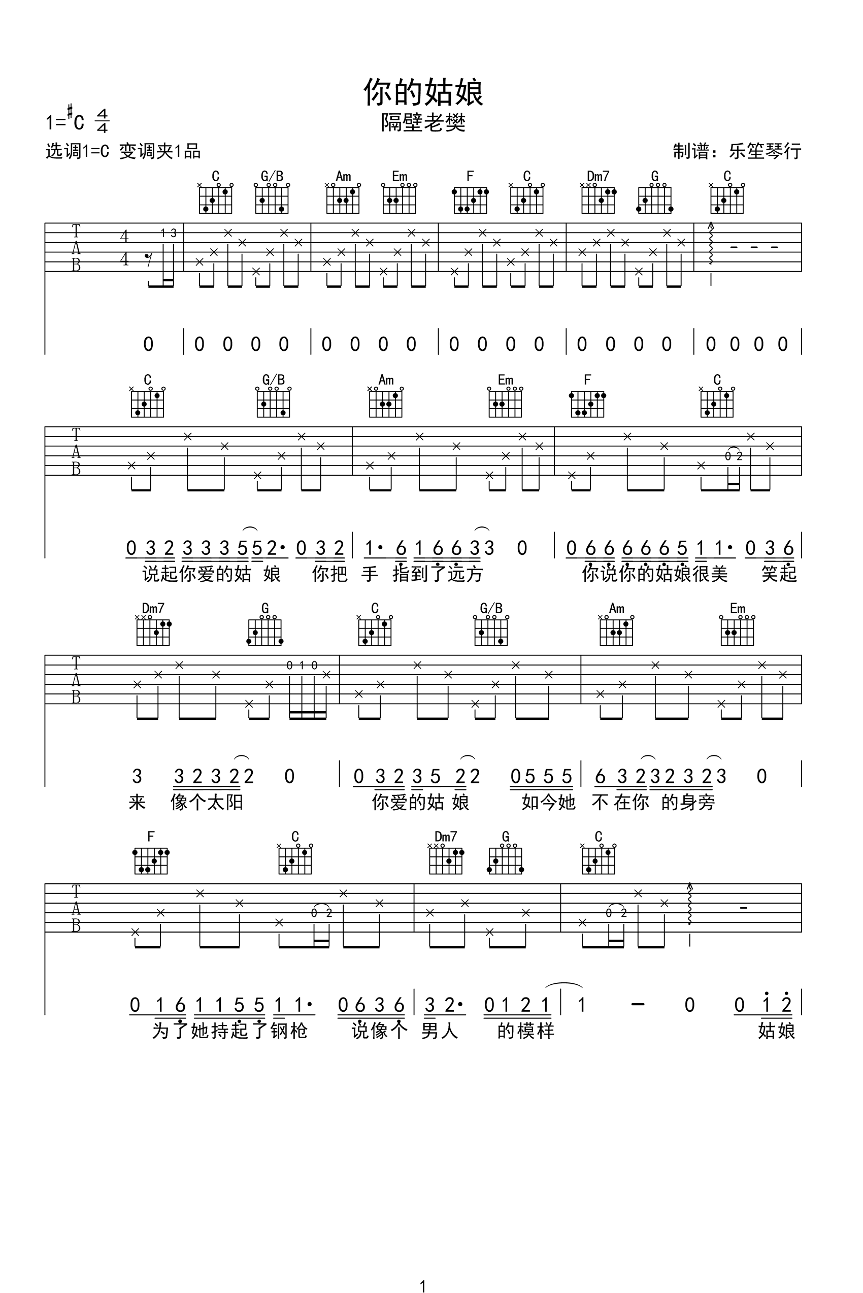 你的姑娘吉他谱 - 隔壁老樊 - C调吉他弹唱谱