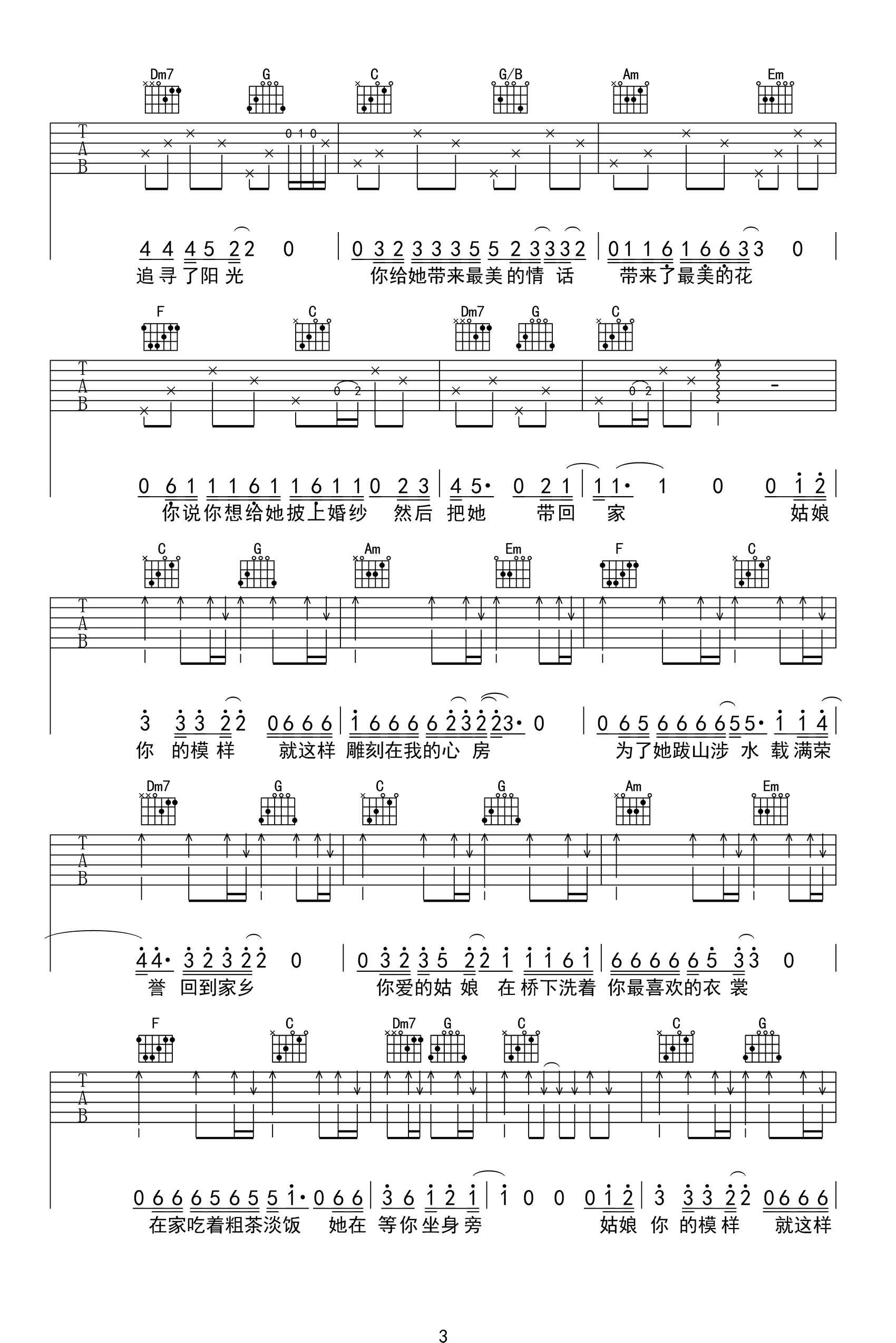 当前位置:琴谱网>吉他弹唱>你的姑娘