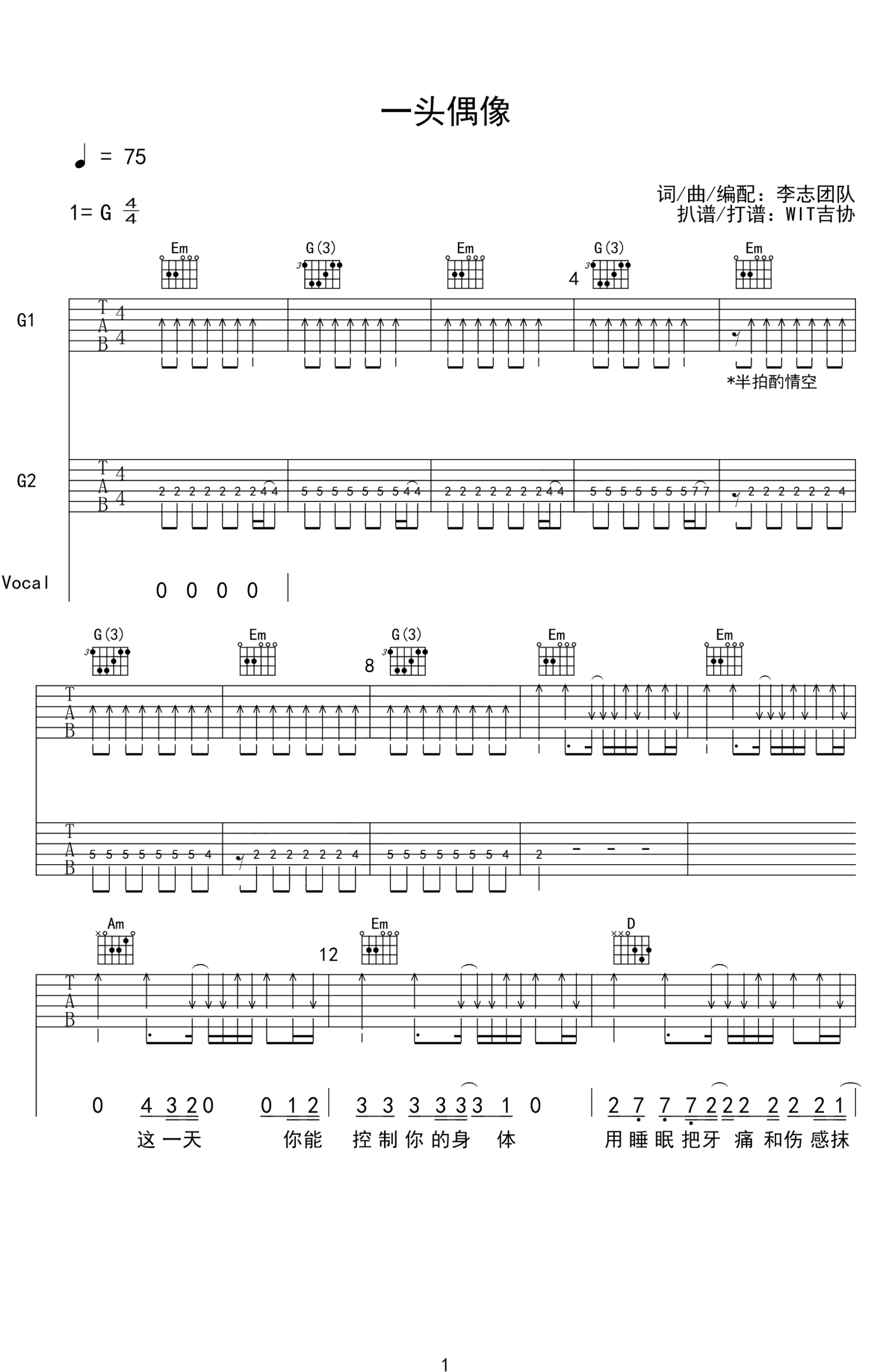 吉他弹唱G调来源:WIT吉协1565 浏览2018-03-19 13:34发布图谱共4页