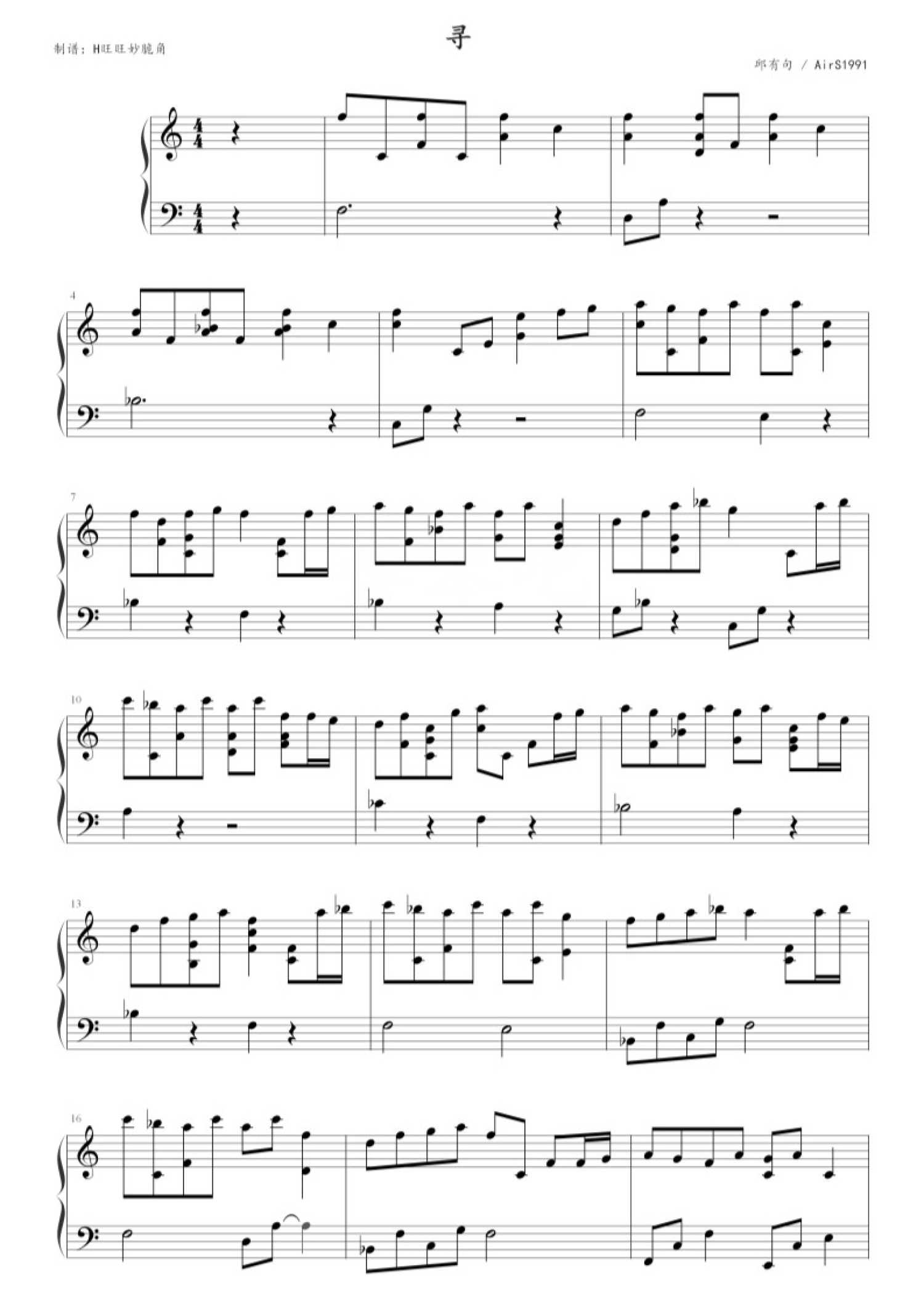 曲谱介绍: 华晨宇《寻》钢琴谱