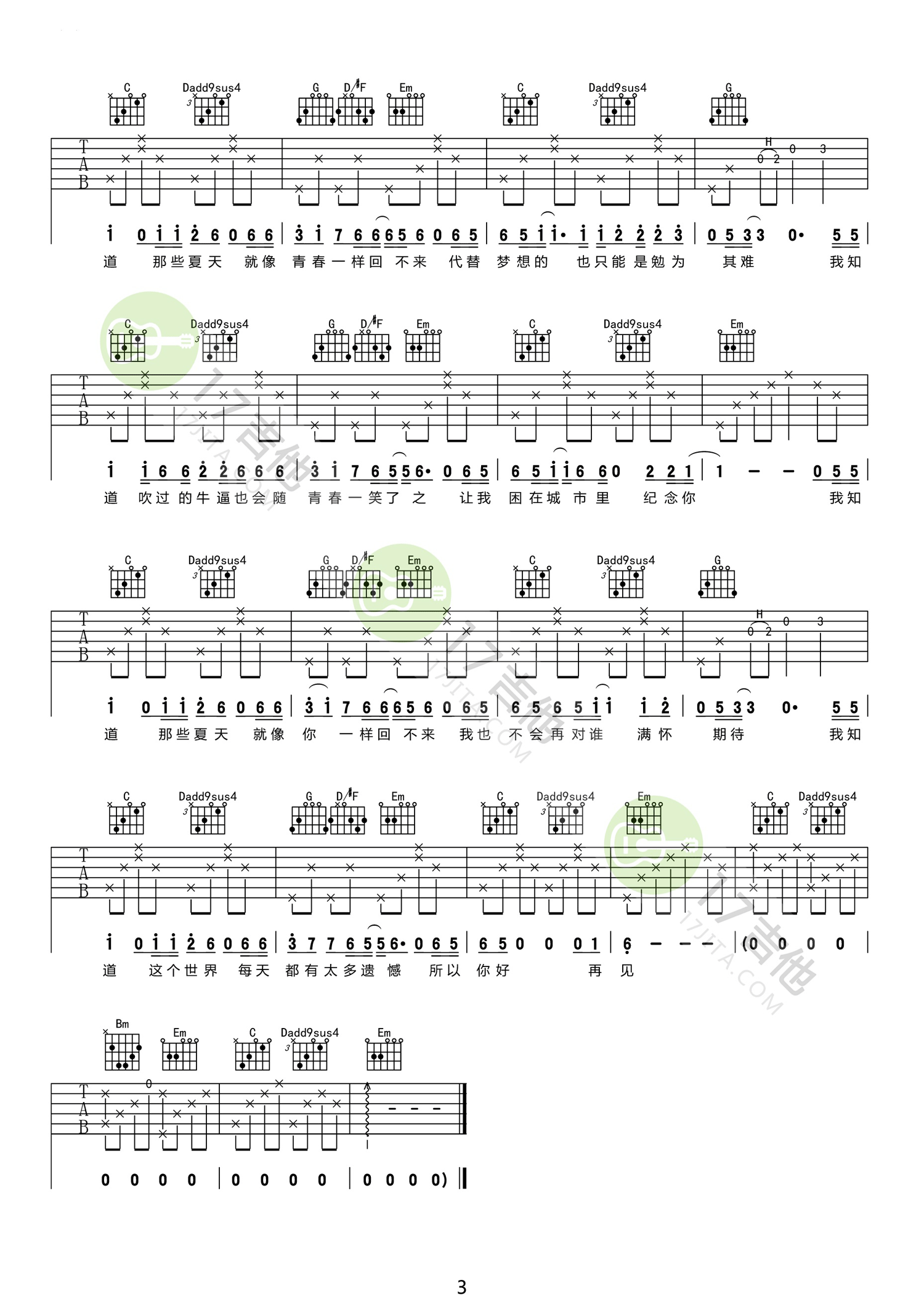 曲谱介绍: 吉他谱介绍:安和桥吉他谱,宋冬野演唱的一首歌曲,4/4拍的节奏,这首歌曲的原调为G调,这里曲谱采用了G调指法进行编配,演唱时可不夹变调夹,曲谱由琴谱网更新上传,共3张高清图片弹唱吉他谱例,来源于@17吉他编配出品。中国大鼓和马头琴的加入让整首曲子别有一番意境风味,纯净的吉他琴弦拨动的声音也是仿佛能让人进入他歌词里所描绘的一幅幅画面中。
